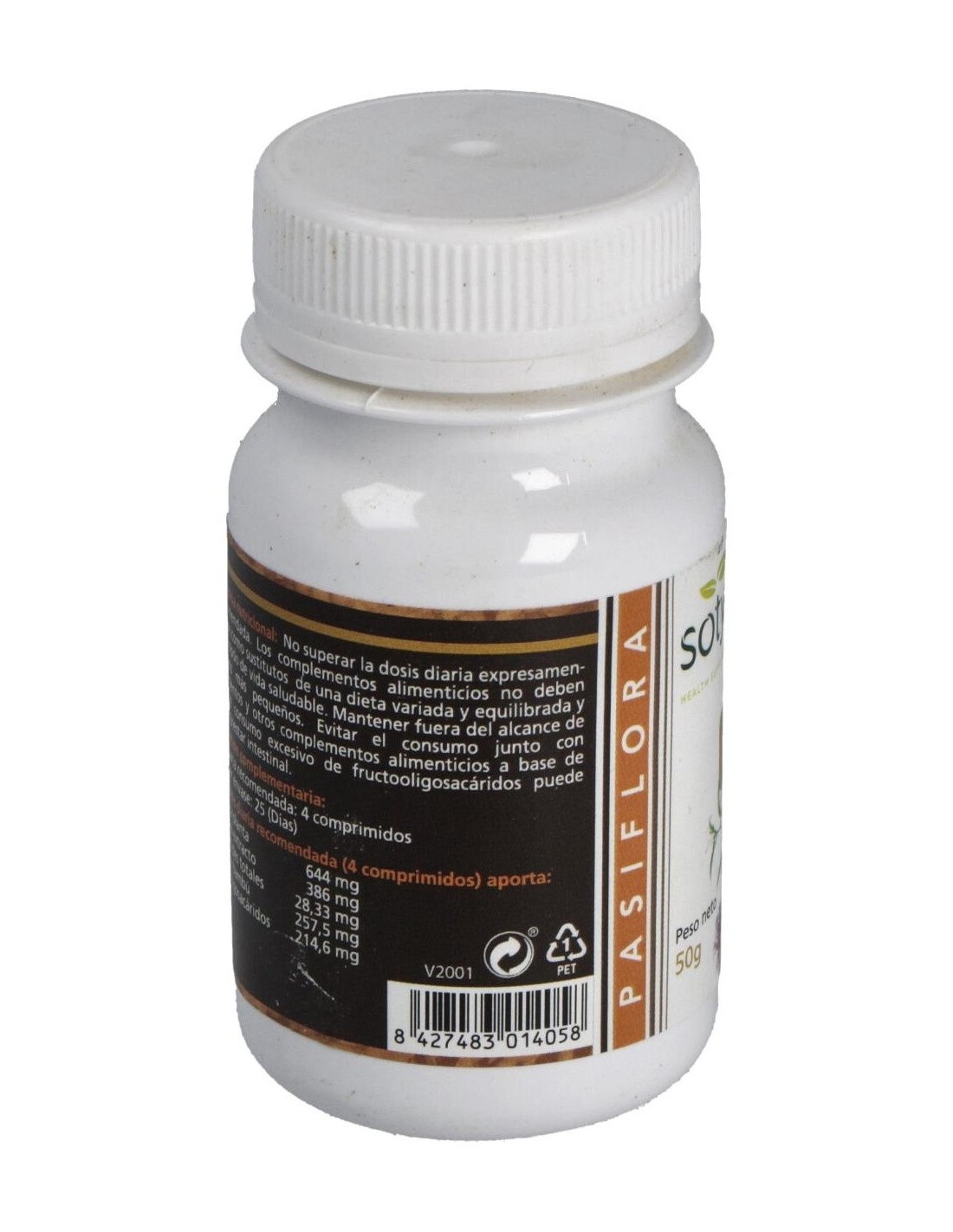 - Cada comprimido contiene 500 mg de extracto de pasiflora, contribuyendo a una ingesta controlada y constante.