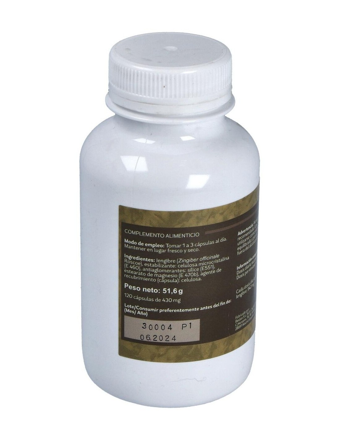 - Cada cápsula contiene 430 mg de jengibre, proporcionando una dosis constante y controlada en cada toma.