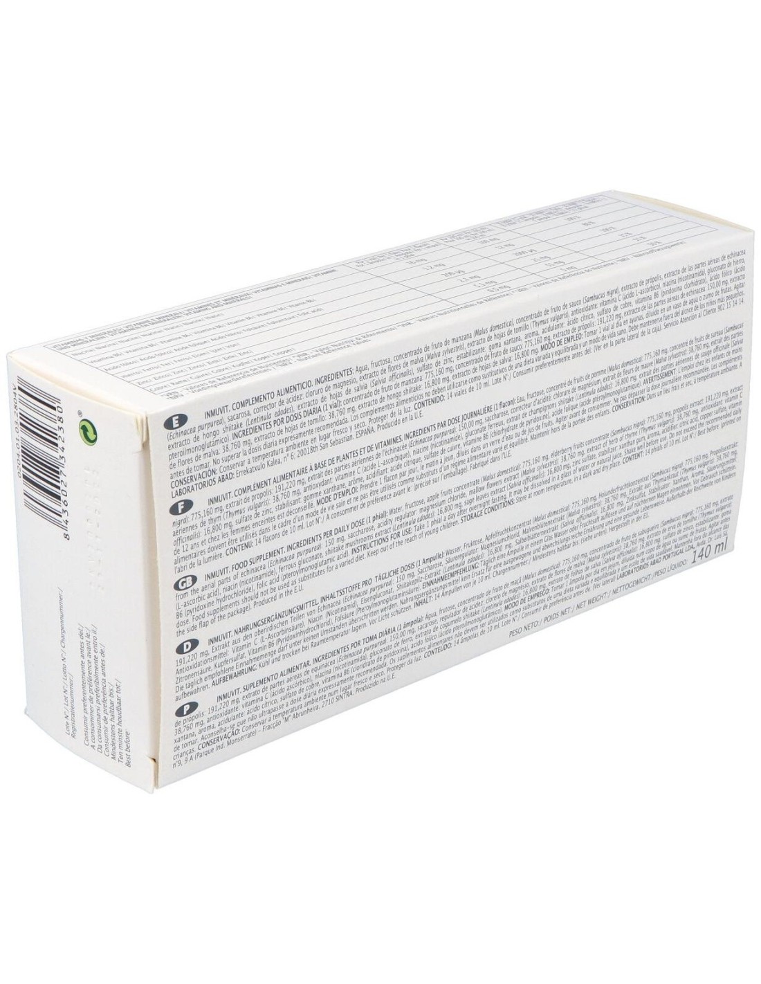 El Inmuvit - Panakibiotic 14 Viales de Kiluva - Abad es un suplemento dirigido a personas que buscan apoyar su bienestar inmunológico, formulado con ingredientes que contribuyen al equilibrio natural del organismo.
