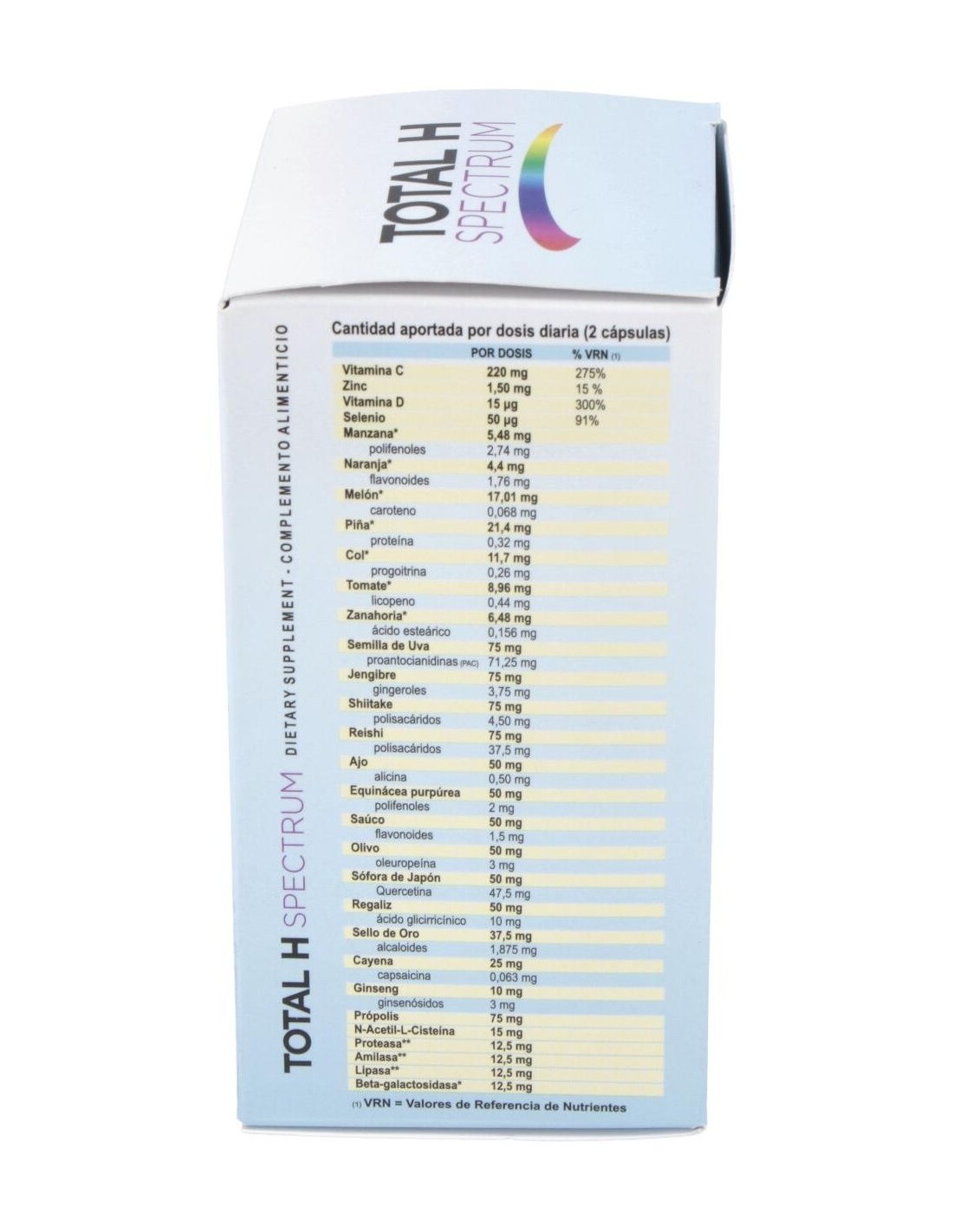 Este producto está elaborado con ingredientes cuidadosamente seleccionados para ofrecer una experiencia cómoda y práctica en su consumo. Su diseño en cápsulas permite una absorción eficiente y una integración sencilla en la rutina diaria. Total Health Spectrum se adapta a diferentes estilos de vida, apoyando el equilibrio nutricional de manera accesible.