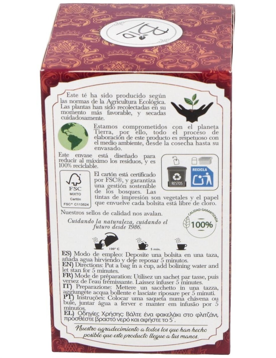 Este producto ofrece una opción de infusión con características tradicionales y certificación ecológica, pensada para quienes buscan una experiencia natural y práctica en su consumo diario.