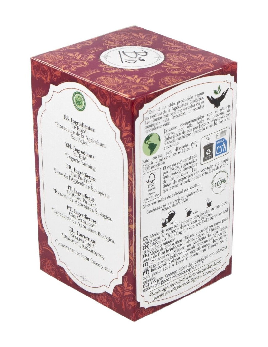 El té puerh rojo de Artemis Bio está elaborado con hojas seleccionadas y sometidas a un proceso de fermentación natural que contribuye a su perfil aromático y sabor distintivo. Su presentación en bolsitas permite una infusión rápida y cómoda, adecuada para quienes prefieren una preparación sin complicaciones.