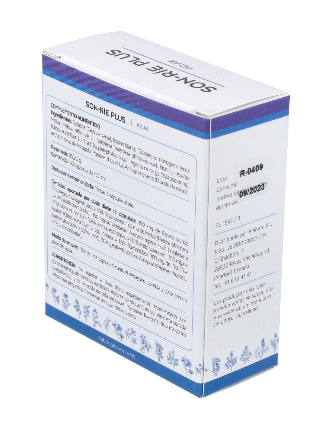 Suplemento con melisa y azahar, entre otras plantas. Suplemento con melisa y azahar, entre otras plantas.