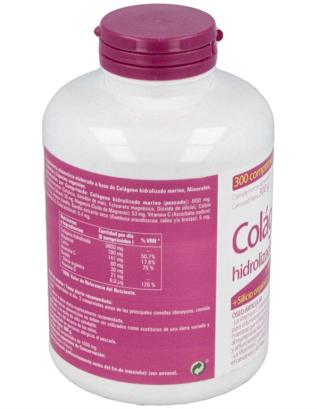 Este suplemento está compuesto principalmente por colágeno hidrolizado marino, obtenido mediante procesos que conservan sus propiedades funcionales. Su presentación en comprimidos permite una administración cómoda y adecuada para quienes prefieren evitar polvos o líquidos. Es un complemento alimenticio pensado para integrarse fácilmente en la rutina diaria.