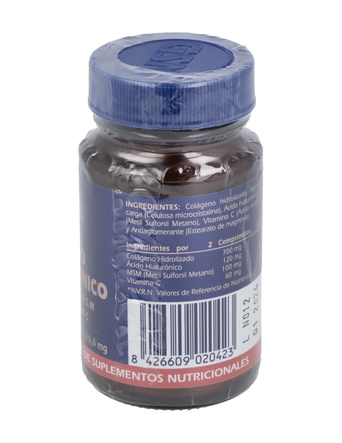 - Cada comprimido contiene una cantidad específica de ácido hialurónico que contribuye a mantener la hidratación natural de la piel y tejidos.