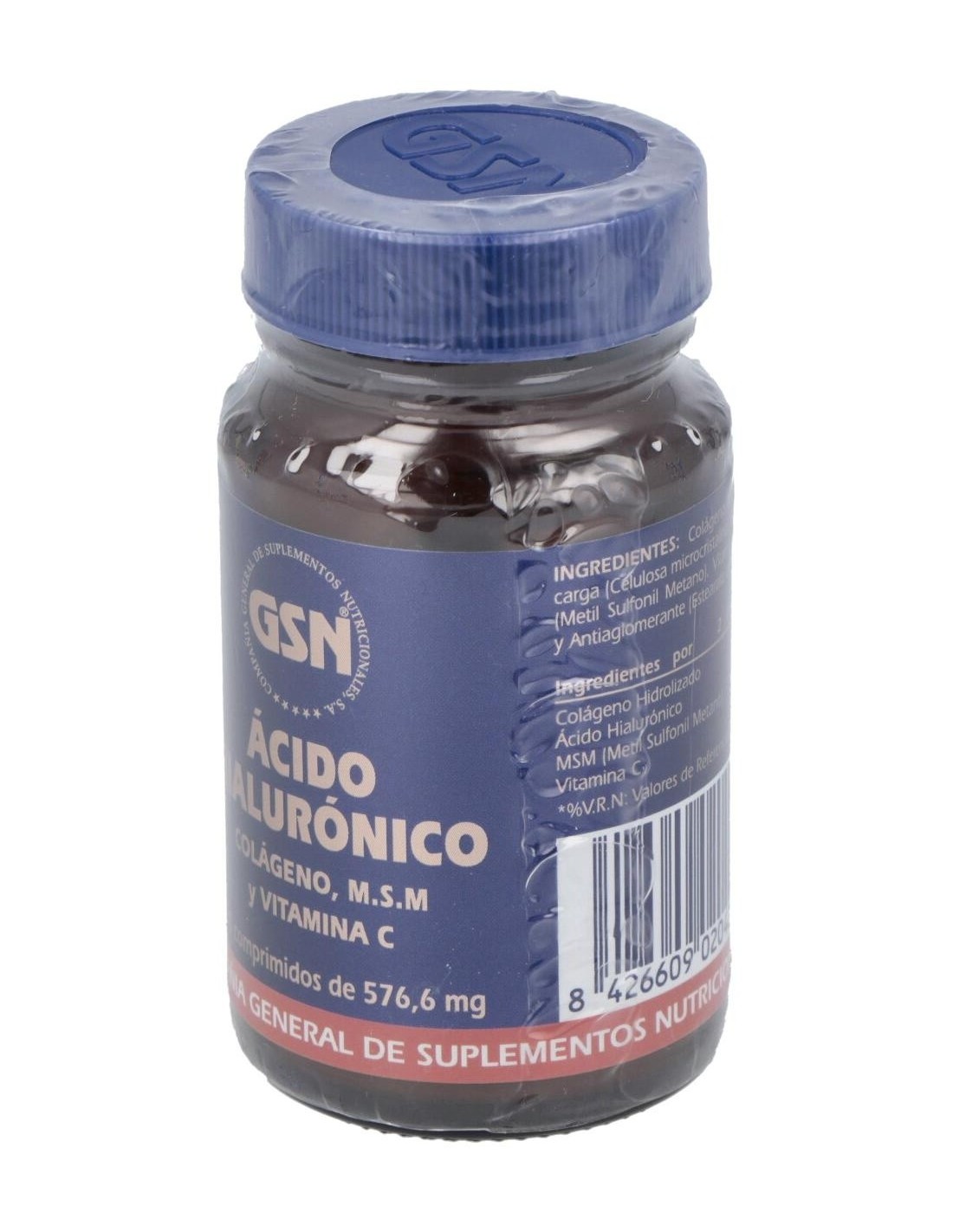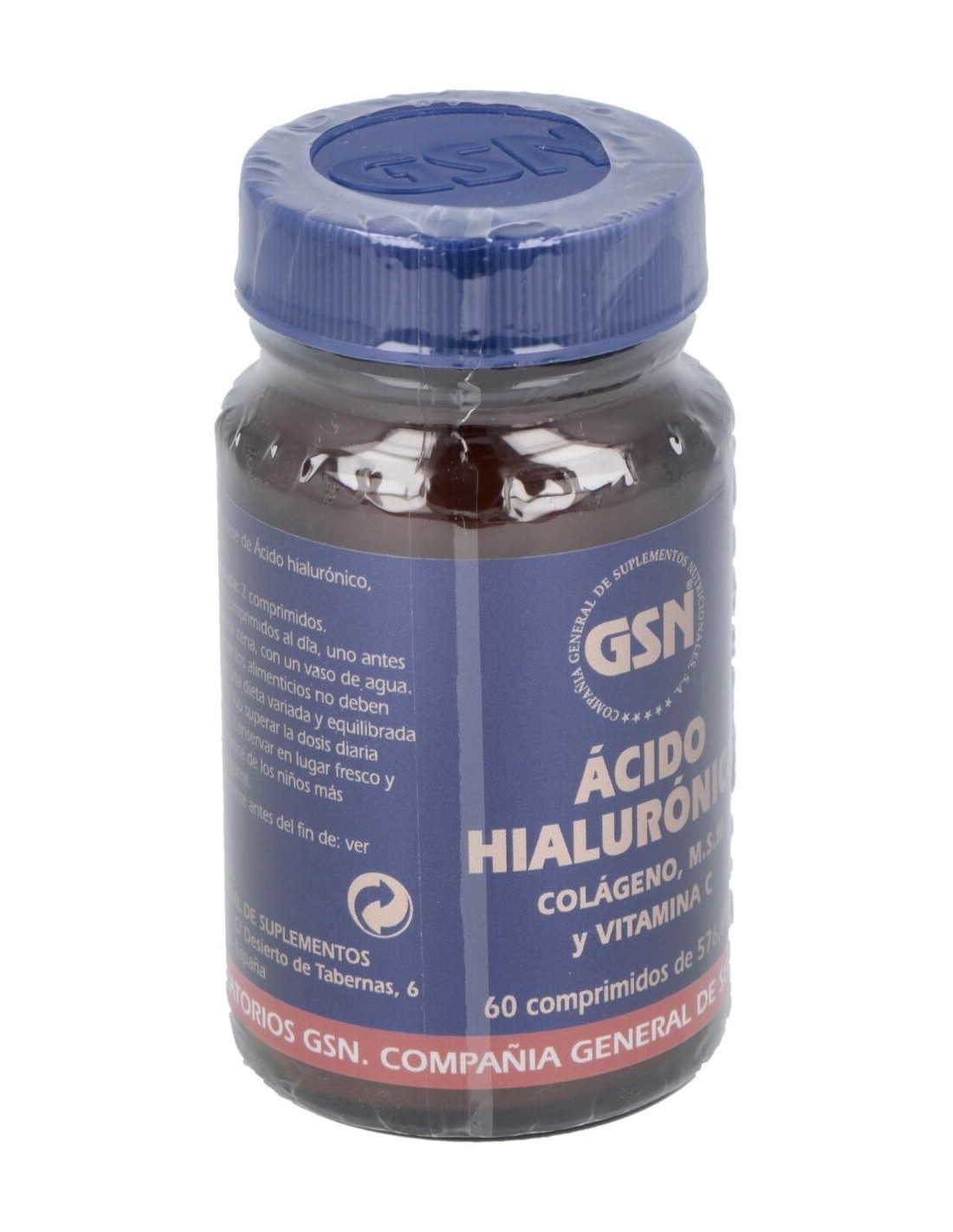 El Ácido Hialurónico 60 Comprimidos de GSN es un suplemento para personas que buscan apoyar la hidratación y salud articular, formulado con ácido hialurónico para contribuir al mantenimiento de tejidos conectivos.