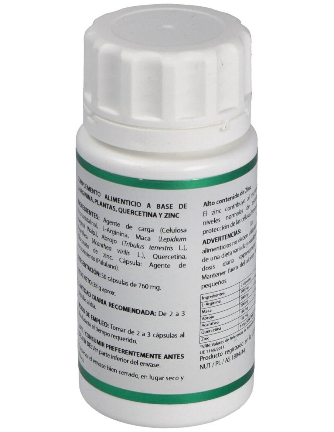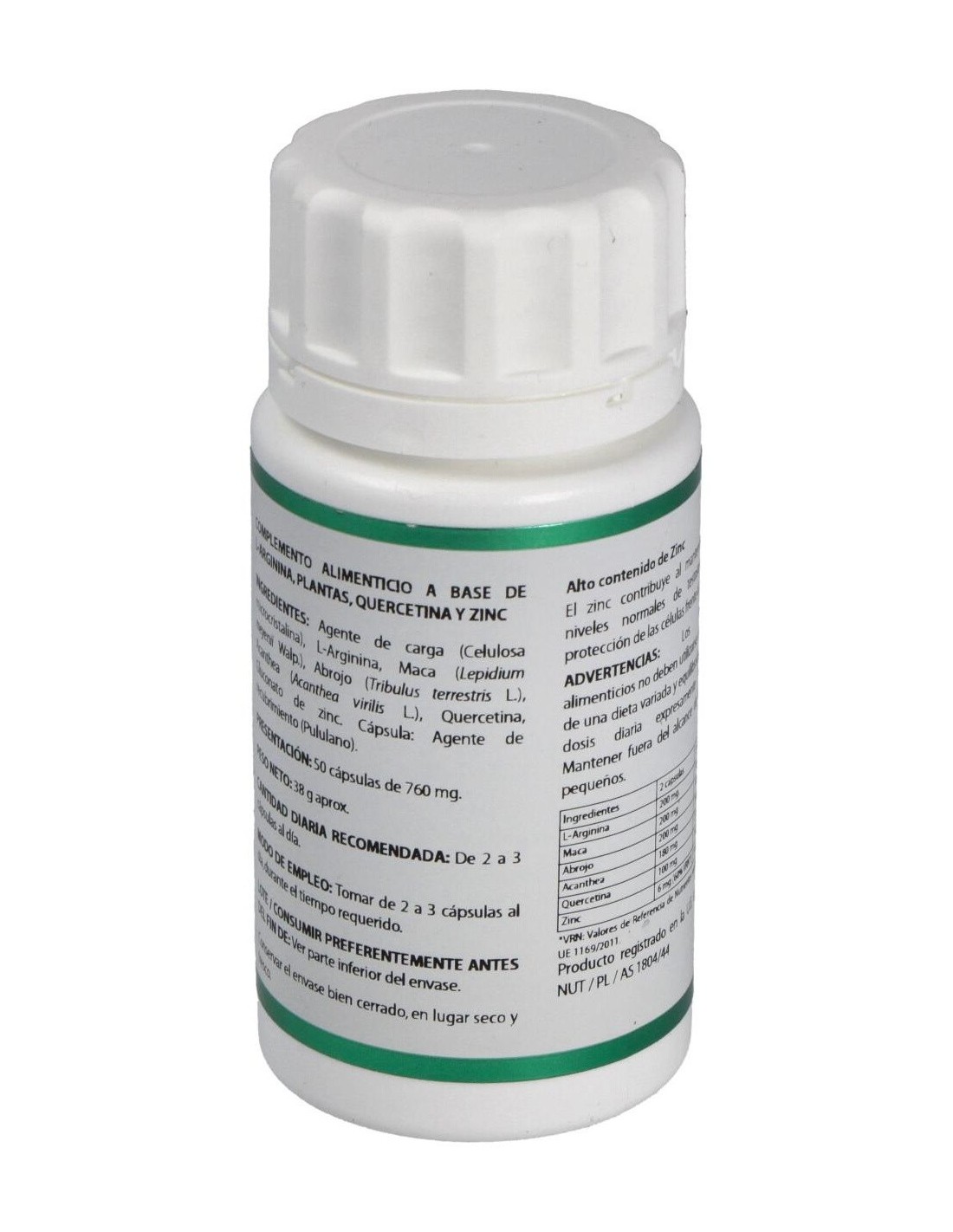 Modo de empleo:Tomar de 2 a 3 cápsulas al día. * La dosis habitual será 2 cápsulas al día (1 a la mañana y otra a la noche o incluso las dos a la vez si pretendemos resultados más bien inmediatos), pudiendo subir hasta 3 al día. La respuesta sexual a estas plantas no es siempre igual y depende de la idiosincrasia de cada persona. Por ello hay que tomar dichas cápsulas hasta conseguir una clara respuesta satisfactoria, hecho que puede ocurrir el primer día en algunos casos o en 1 ó 2 meses en otros. Presentación:Envase de 50 cápsulas.