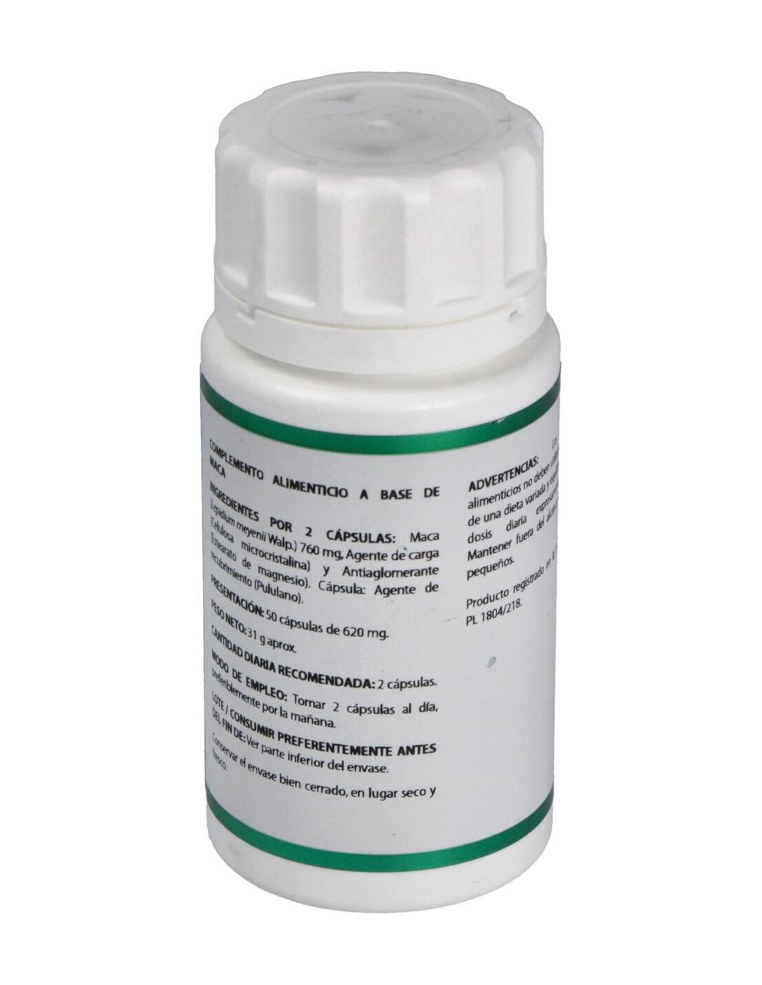Tradicionalmente, la maca, denominada como ginseng peruano, es empleada como inmunoestimulante, en anemia, tuberculosis, síndrome de fatiga crónica, mejora de la memoria, desórdenes menstruales, sintomatología menopáusica, tumor de estómago, esterilidad y otras alteraciones reproductivas y sexuales, como la impotencia y la disfunción sexual, para aumentar la energía y la resistencia física y mental. La Maca puede aumentar la libido y la fertilidad independientemente del funcionamiento de las hormonas sexuales y parámetros emocionales como la depresión o la ansiedad. Se utiliza también para regular la actividad de los ovarios, en concreto en el caso de síndrome premenstrual o en caso de menopausia. Ingredientes activos por cápsula:380 mg de extracto seco 4:1 de maca (Lepidium meyenni Walp, tubérculo). Modo de empleo:Tomar 2 cápsulas al día. Presentación:Bote de 50 cápsulas.