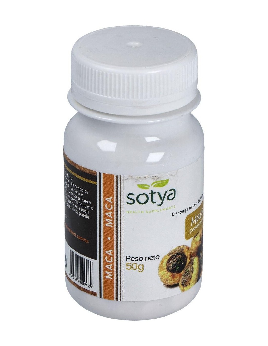 La Maca 500Mg Comp. 100U de Sotya es un suplemento natural dirigido a adultos que buscan apoyar su energía y vitalidad diaria, formulado con extracto de maca para contribuir al bienestar general.