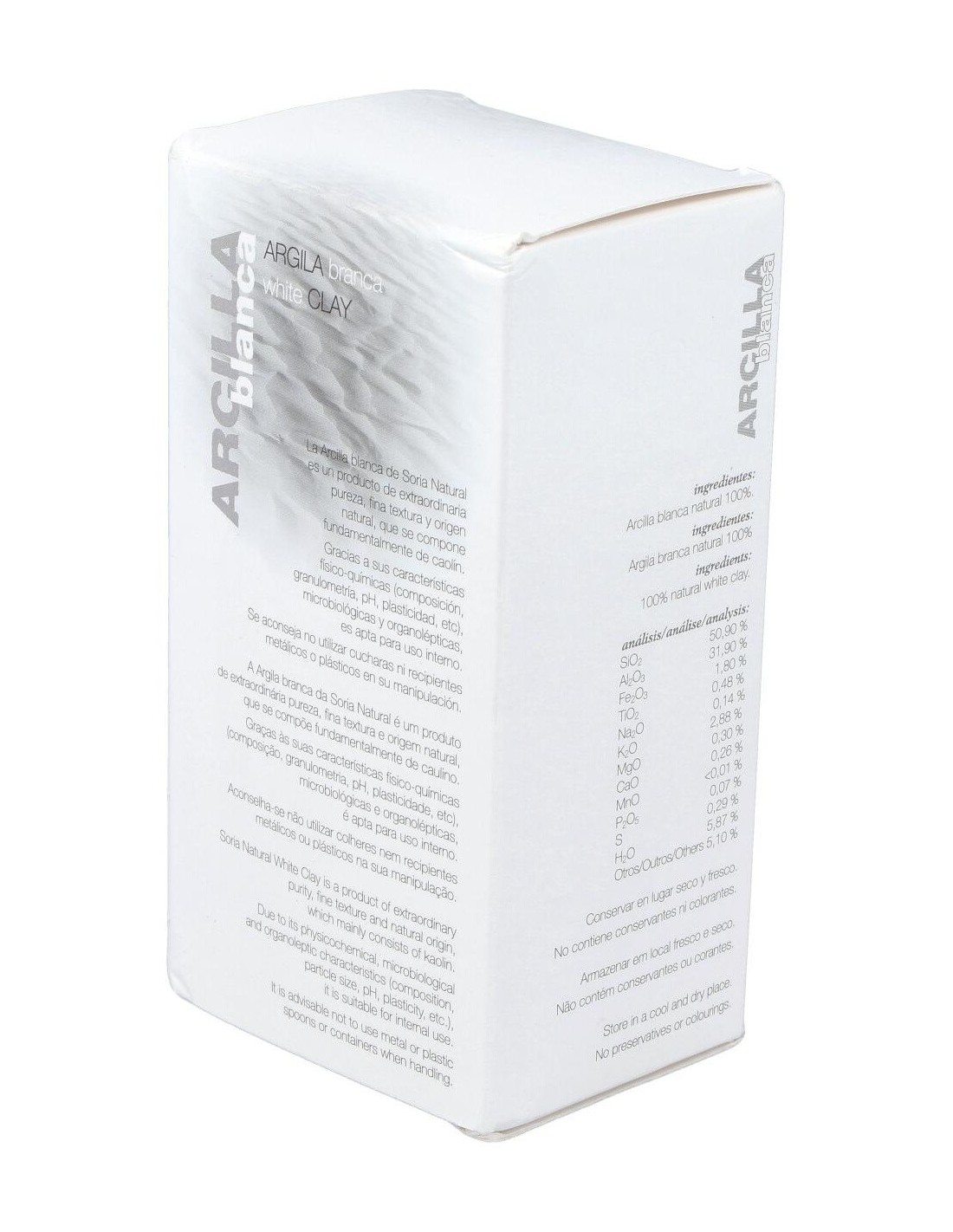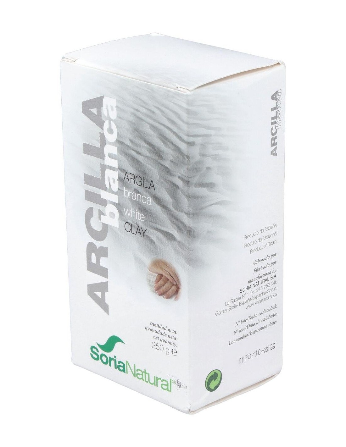 Mascarilla facial: Se aconseja poner una cucharada sopera de arcilla blanca en un recipiente adecuado (no metálico ni de plástico) y añadir poco a poco agua o infusiones, hasta obtener la consistencia deseada. La mascarilla debe ser de consistencia firme par que no chorree, pero tampoco debe hacerse demasiado espesa. Aplicar sobre la cara y cuello, evitando el contorno de ojos y labios, una fina capa, dejar que actúe unos 10 minutos y retirar con agua tibia antes de que seque totalmente. Posteriormente se puede aplicar una crema hidratante.
