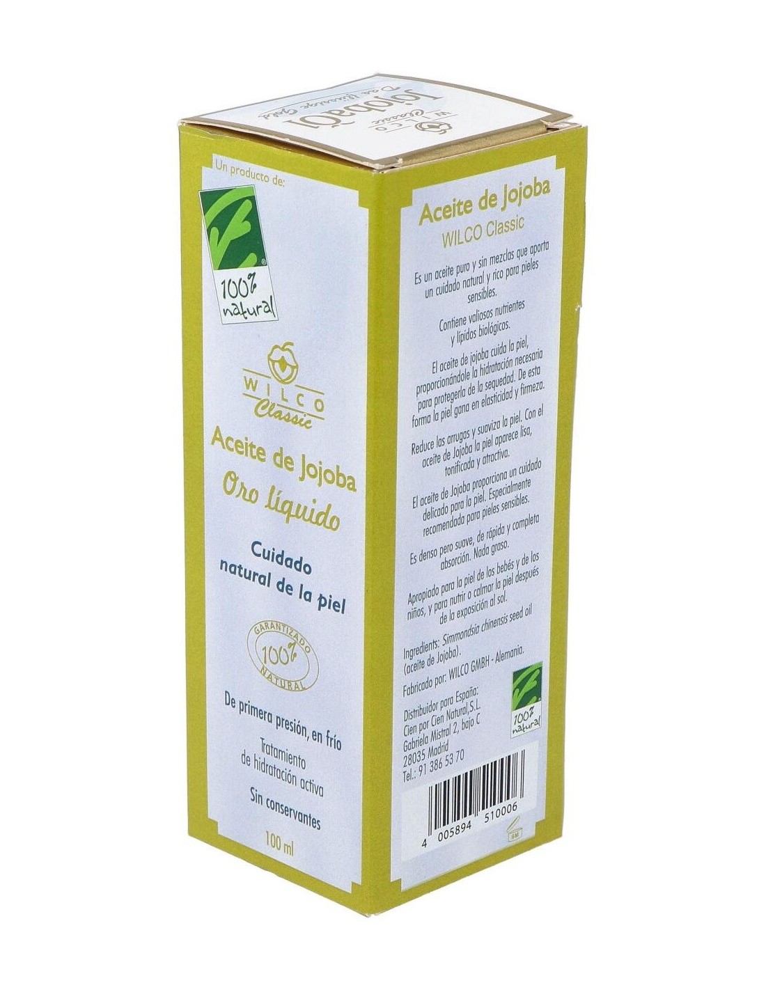 El Aceite De Jojoba 100Ml. de Cien Por Cien Natural es un aceite facial y corporal para personas que buscan hidratación profunda, formulado con extracto puro que ayuda a mantener la piel suave y equilibrada.