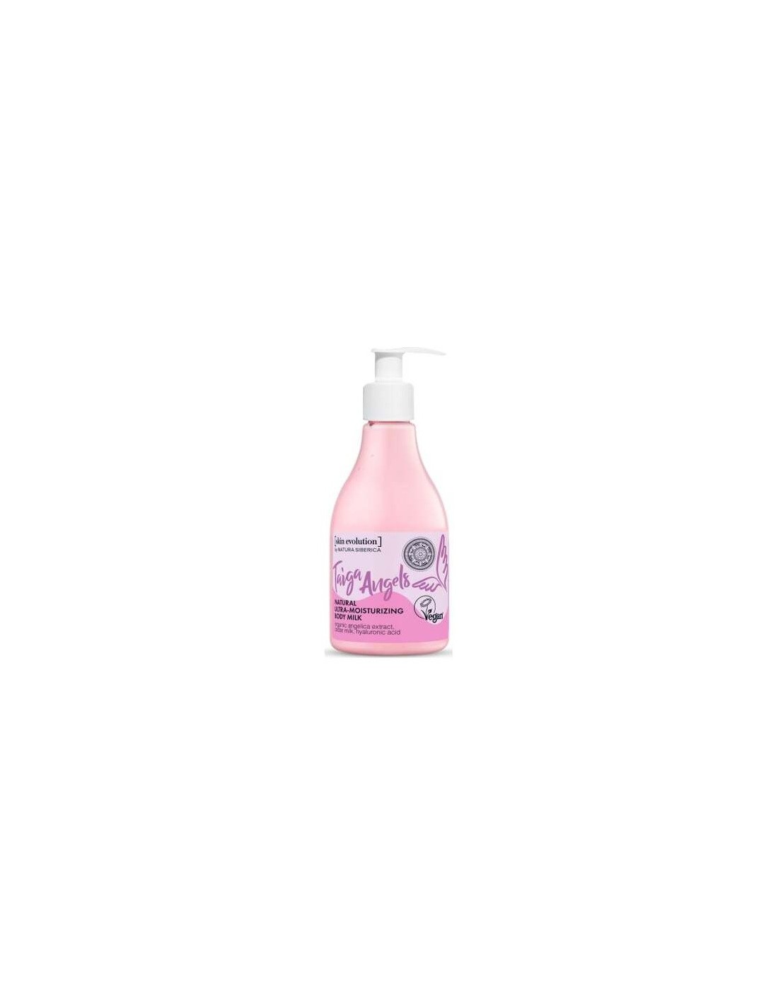NATURA SIBERICAGracias a la mezcla de extractos y de ácido hialurónico de la leche corporal «Taiga Angels» la piel se siente increíblemente hidratada y con un tacto suave y aterciopelado. El extracto de angélica orgánica tonifica la piel y la llena la piel de energía. Cosmético vegano.