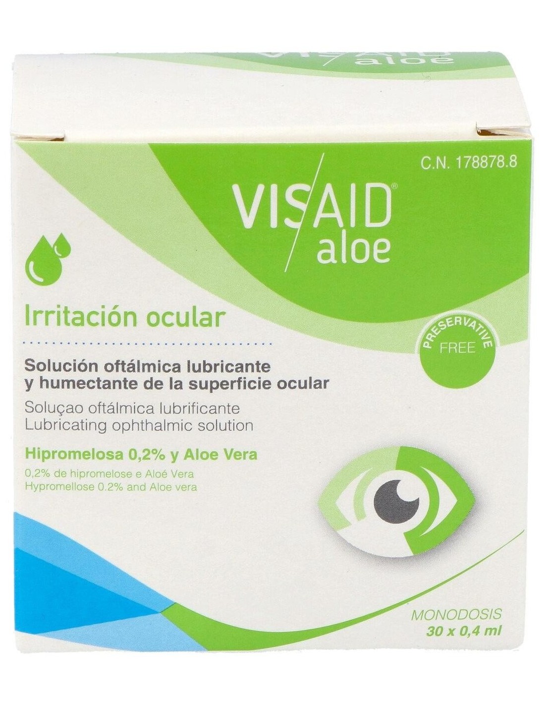 Solución oftálmica lubricante, isotónica y libre de conservantes con hipromelosa, aloe vera y electrolitos esenciales, para ser administrada a nivel ocular. Indicada para el alivio de la sequedad e irritación ocular. Con propiedades Antiinflamatorias ya que inhibe la enzima ciclooxigenasa (COX), inhibiendo la síntesis de prostaglandinas(PG) y el proceso inflamatorio. Propiedades calmantes al contener enzimas carboxipeptidasas y bradiquinasas que provocan efecto calmante. Y finalmente lubricante y humectante, ya que contiene Hipomelosa al 0,2%. Sin conservantes, ni sulfatos.