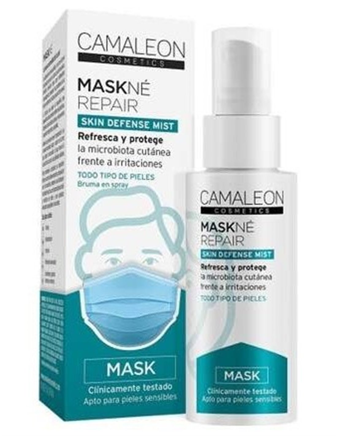 Camaleon Maskne Skin Defense Mist Spray aporta una capa adicional de cuidado para la piel, ayudando a mantenerla equilibrada y confortable en situaciones de uso prolongado de mascarillas.