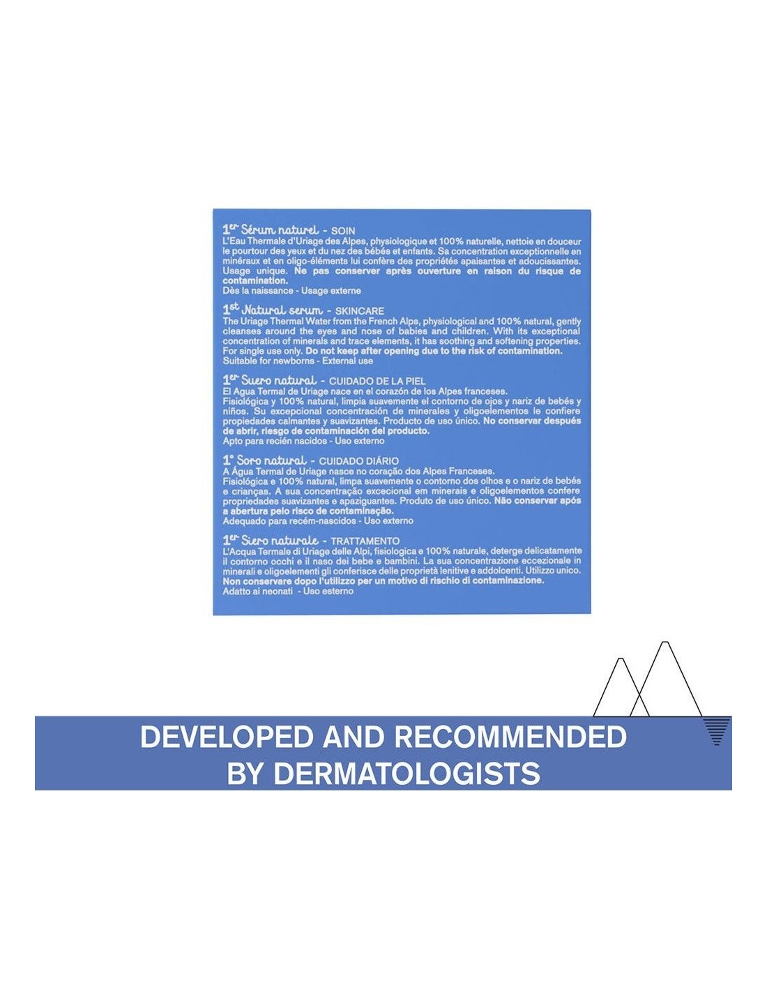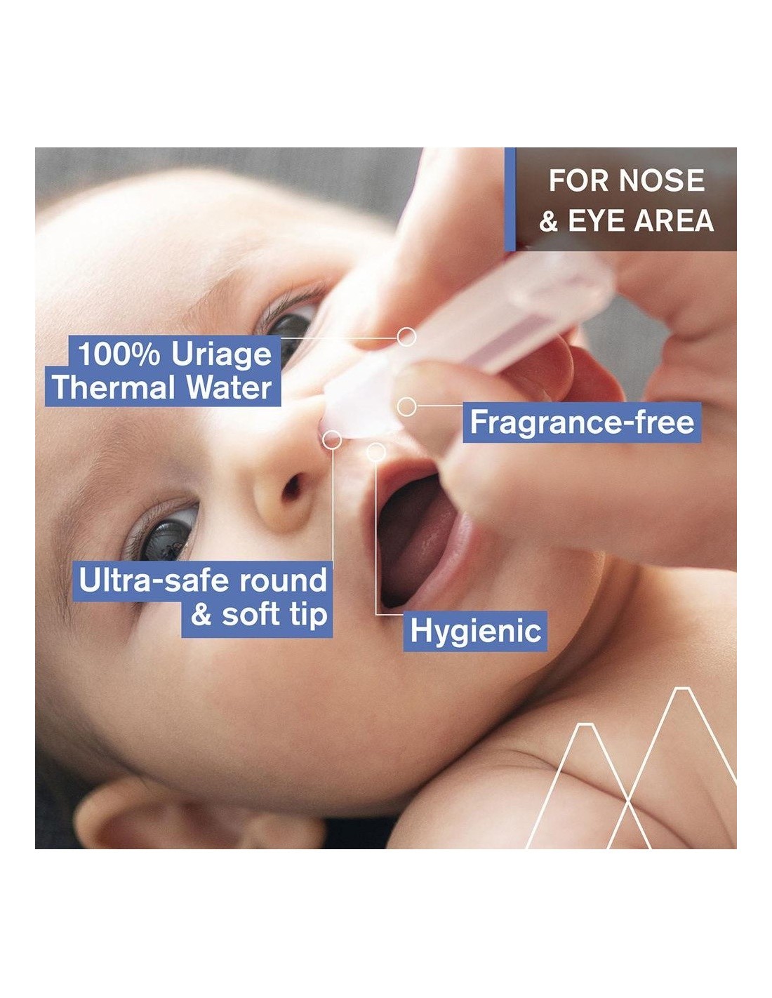Serum del Agua Termal de Uriage, fisiológica y 100% natural idónea para limpiar suavemente la zona de los ojos y la nariz de los niños pequeños. El revestimiento de la cavidad nasal del bebé es frágil y sensible a las bacterias, los virus, el resfriado y la contaminación. Contiene una composición natural de minerales y oligoelementos que le confiere propiedades calmantes y suavizantes para limpiar y proteger la piel frágil del bebé.