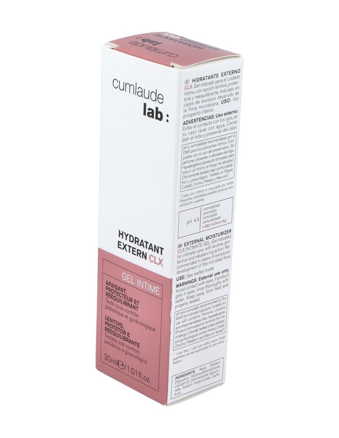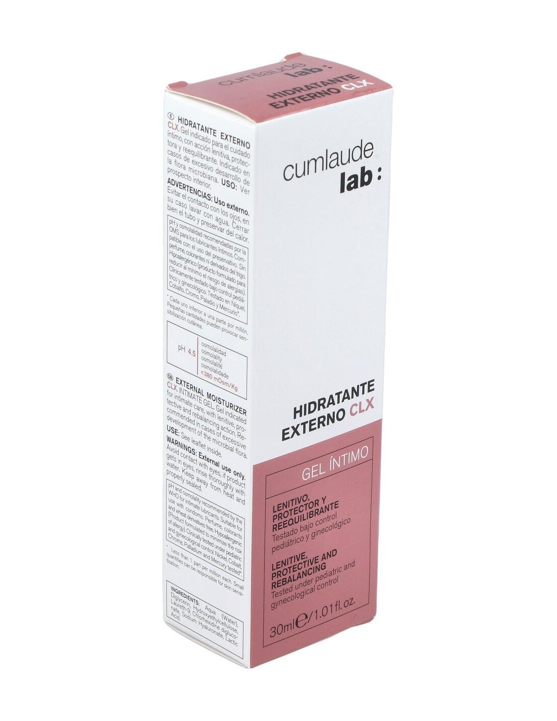 Cumlaude hidratante externo CLX 30ml es un gel hidratante formulado con clorhexidina con pH6 especialmente indicado para el cuidado íntimo de la zona externa de la vagina.