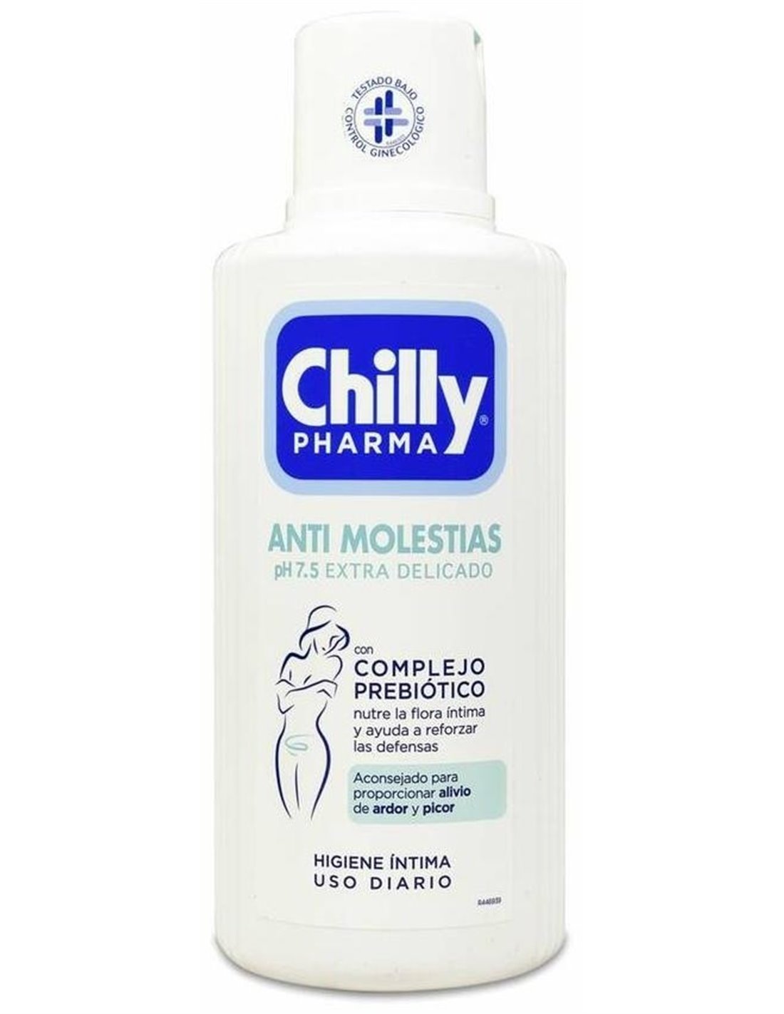 CHILLYGel de higiene íntima formulado con un complejo prebiótico que nutre la flora íntima y ayuda a reforzar cada día las defensas naturales, para favorecer el bienestar fisiológico de la zona íntima. Aconsejado a mujeres que buscan alivio de ardor, picor y enrojecimientos.
