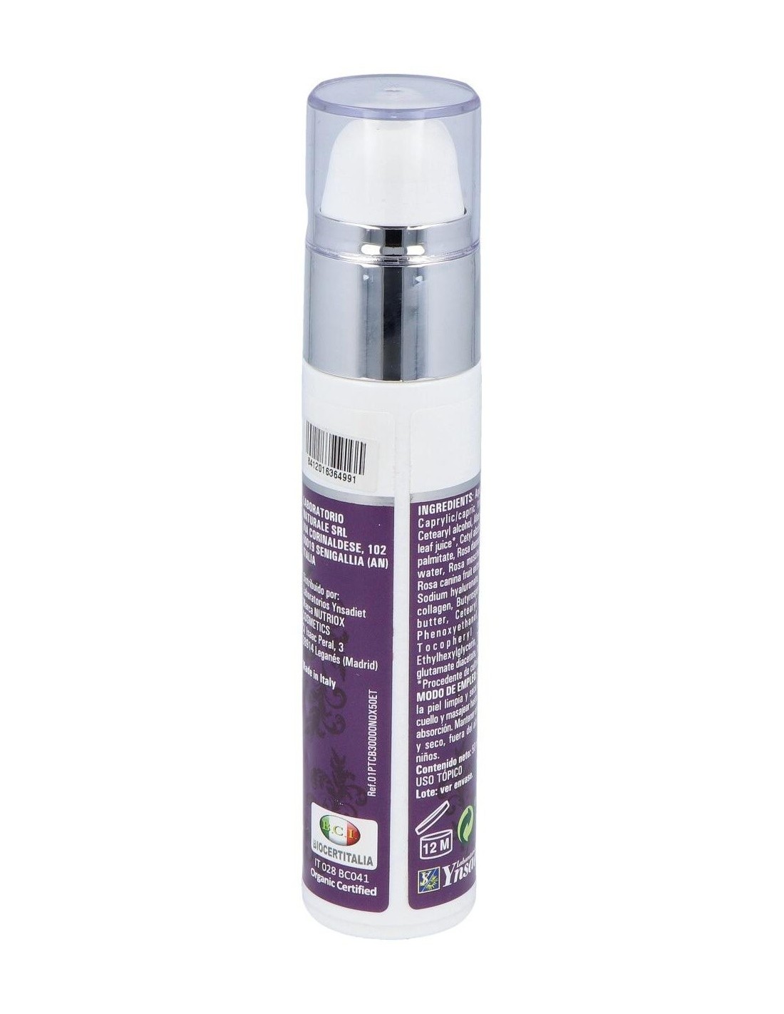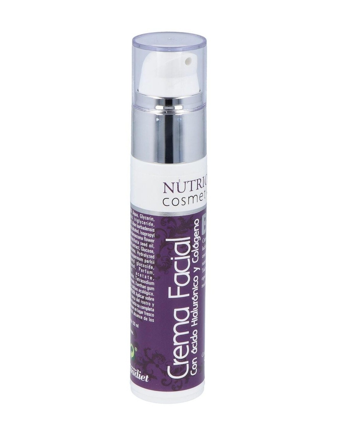 El producto está elaborado con ingredientes de origen natural certificados, combinando ácido hialurónico y colágeno en una base que respeta el equilibrio cutáneo. Su envase de 50 ml permite un uso prolongado y cómodo, ideal para la aplicación diaria en el rostro.