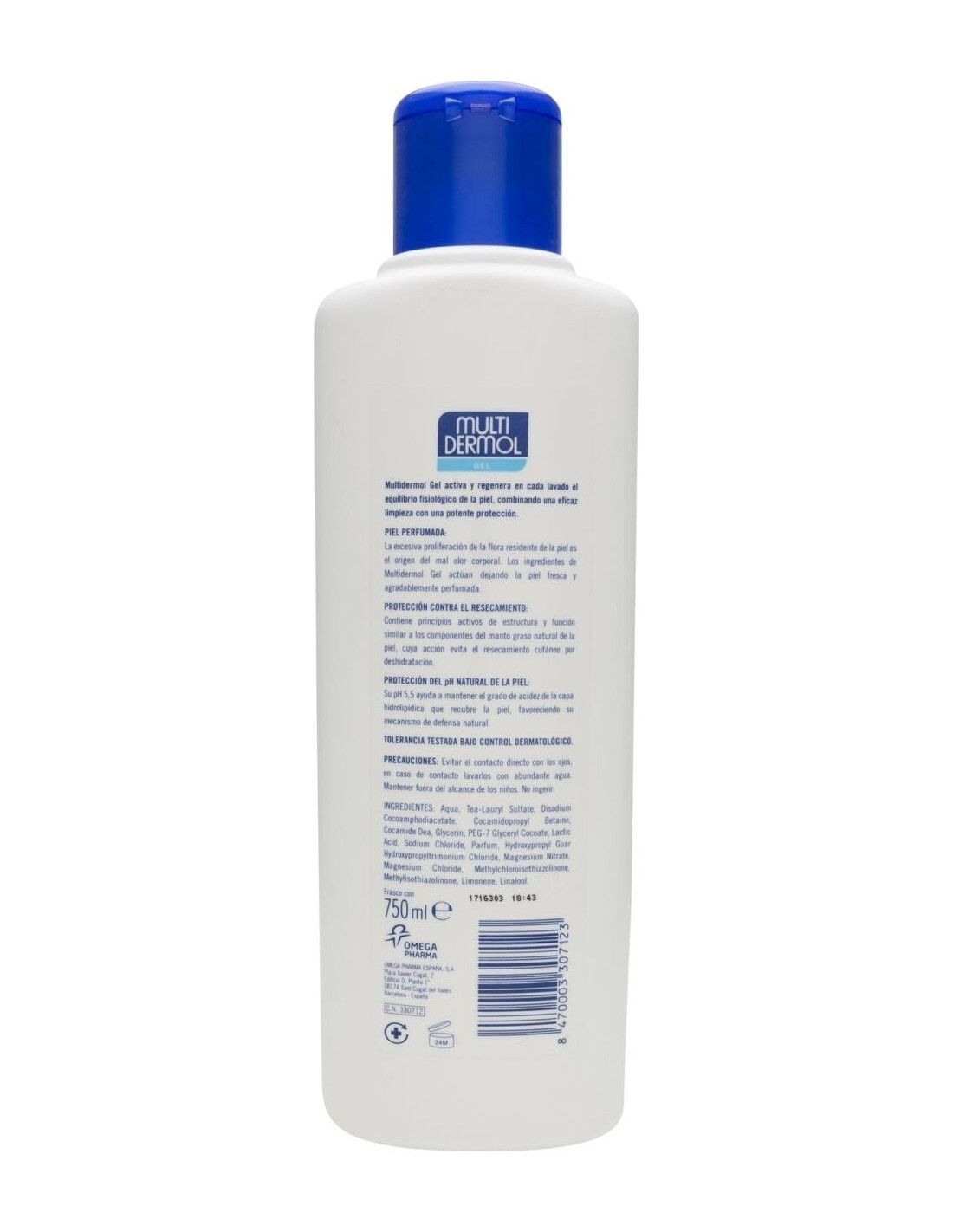 Multidermol gel 750ml es un gel de baño con propiedades hidratantes. Protege la piel, ayuda a evitar la deshidratación cutánea, repara la estructura celular y mantiene su estabilidad sin producir picores ni irritaciones. Su composición contiene un pH 5.5 y principios activos muy similares a aquellos que genera el organismo para reparar la capa de defensas de la piel.