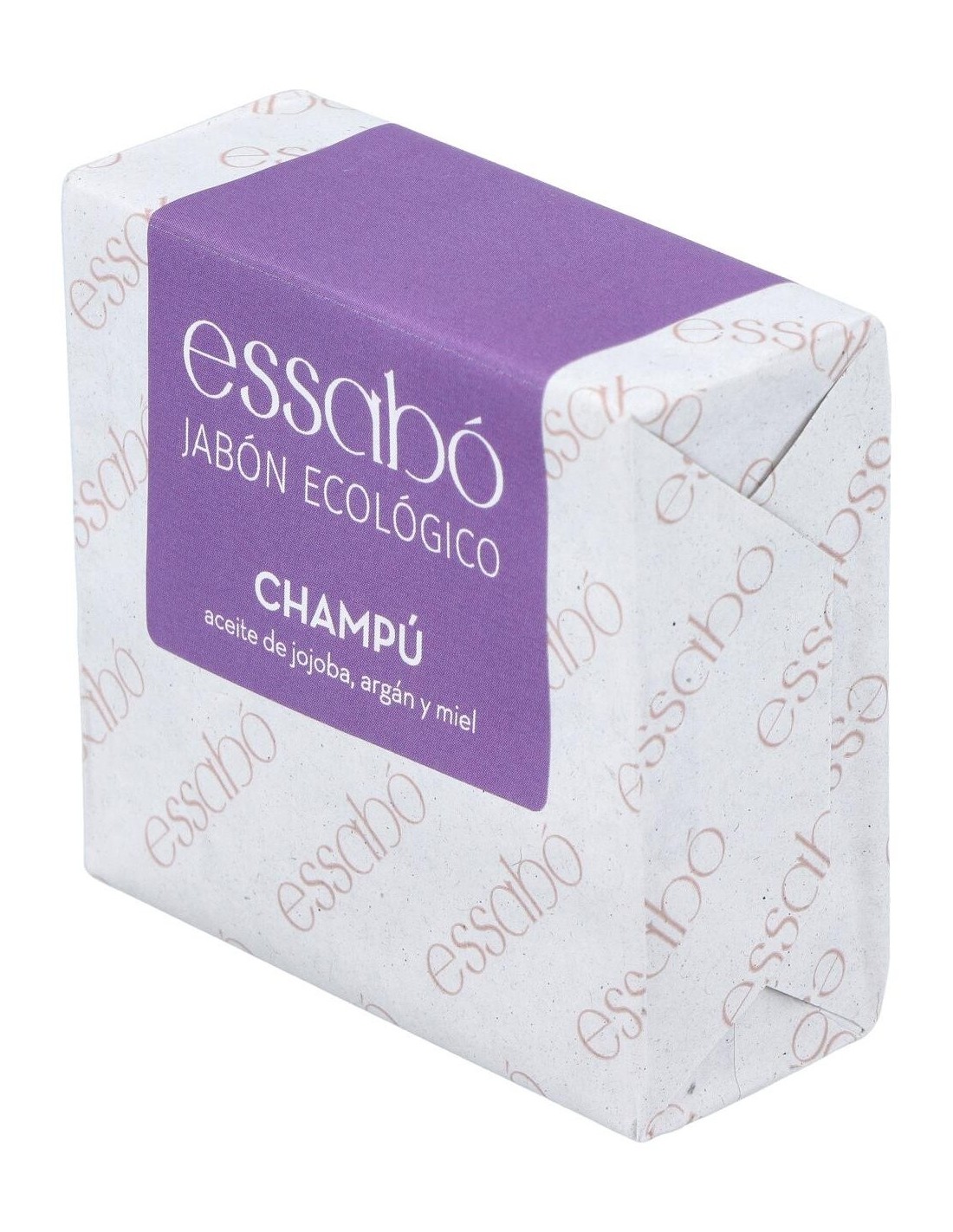 Essabó Champú es un jabón ecológico específico para el lavado del cabello, enriquecido con aceite de jojoba, argán y aloe vera ecológicos, acondiciona