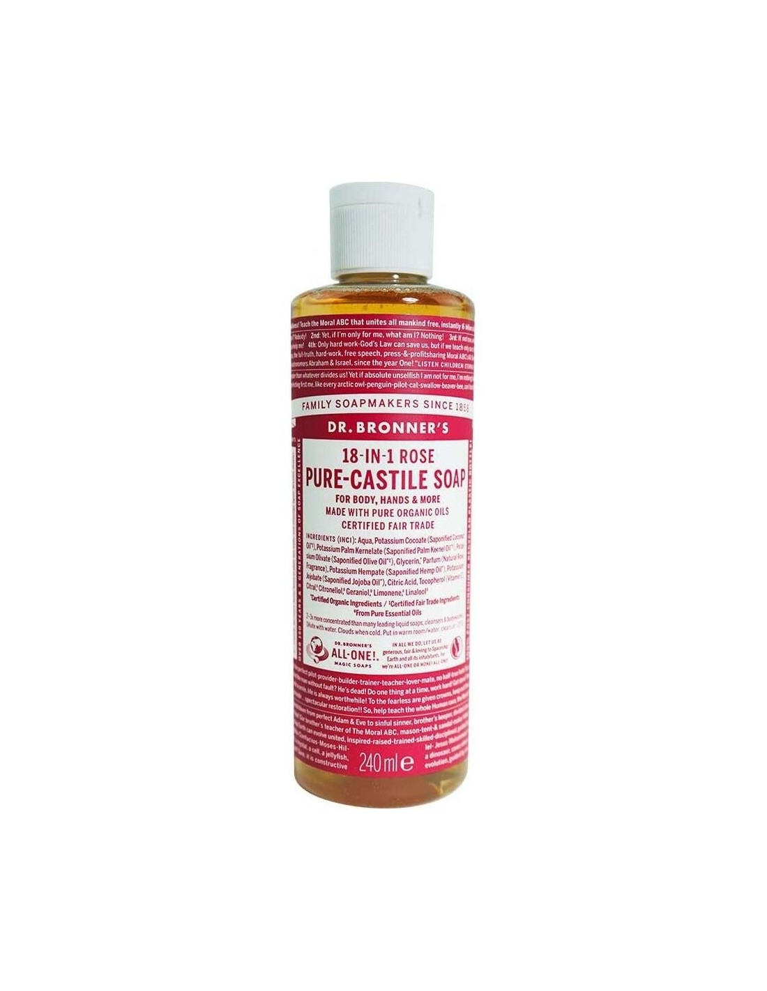 Descubre el increíble poder del Jabon Liquido Rosas 240Ml. de Dr. Bronner´S, un producto exclusivo que transforma tu rutina de limpieza en una experiencia única y refrescante. Este jabón líquido está formulado con ingredientes naturales y aceites esenciales de rosa, que ofrecen una fragancia delicada y un cuidado profundo para tu piel.