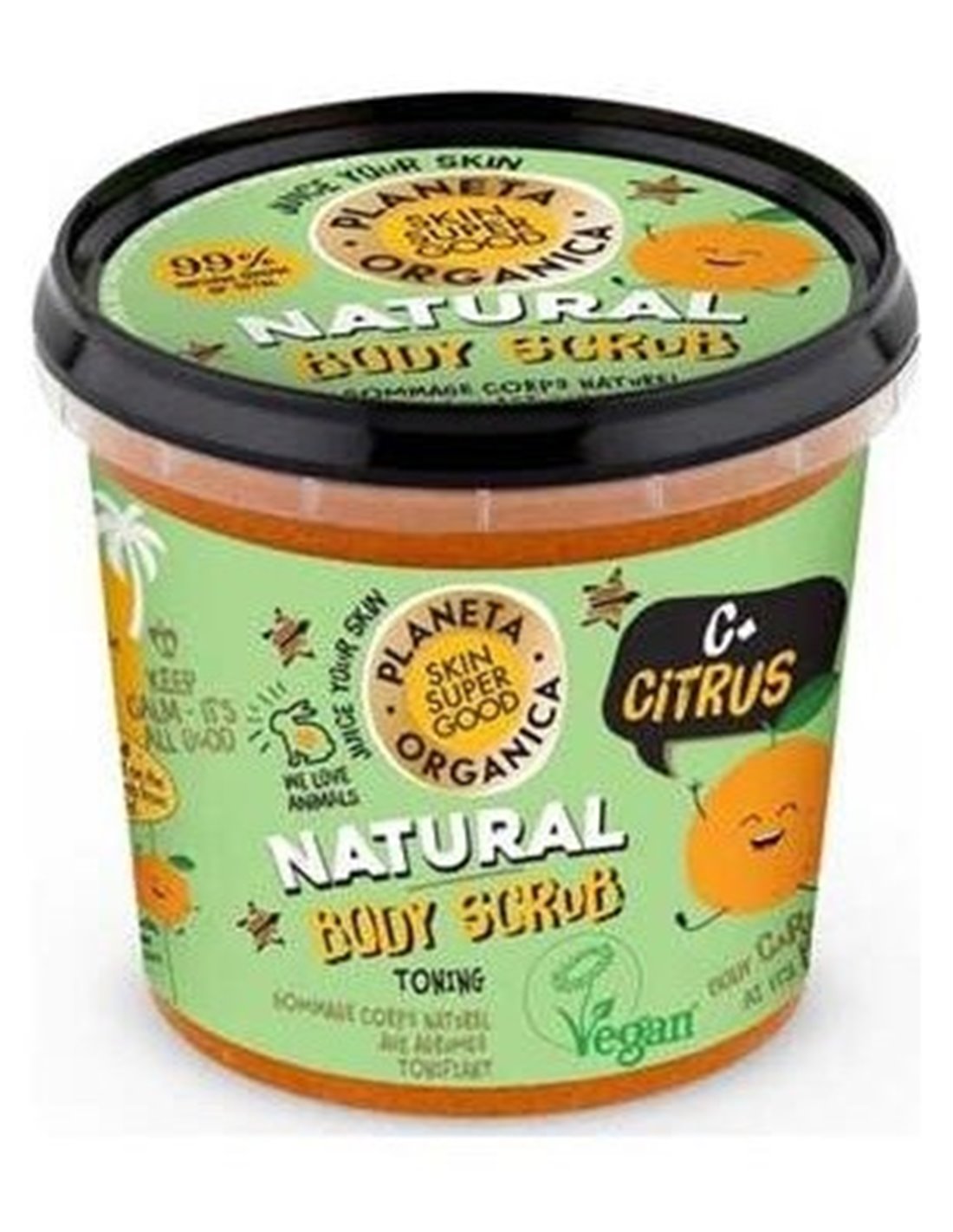Mezcla de cítricos frescos en un exfoliante súper tonificante para la piel. Los extractos orgánicos de mandarina, limón y lima suavizan la piel. Los extractos orgánicos de naranja y pomelo rosado energizan la piel y le dan brillo. La vitamina C natural tonifica la piel.