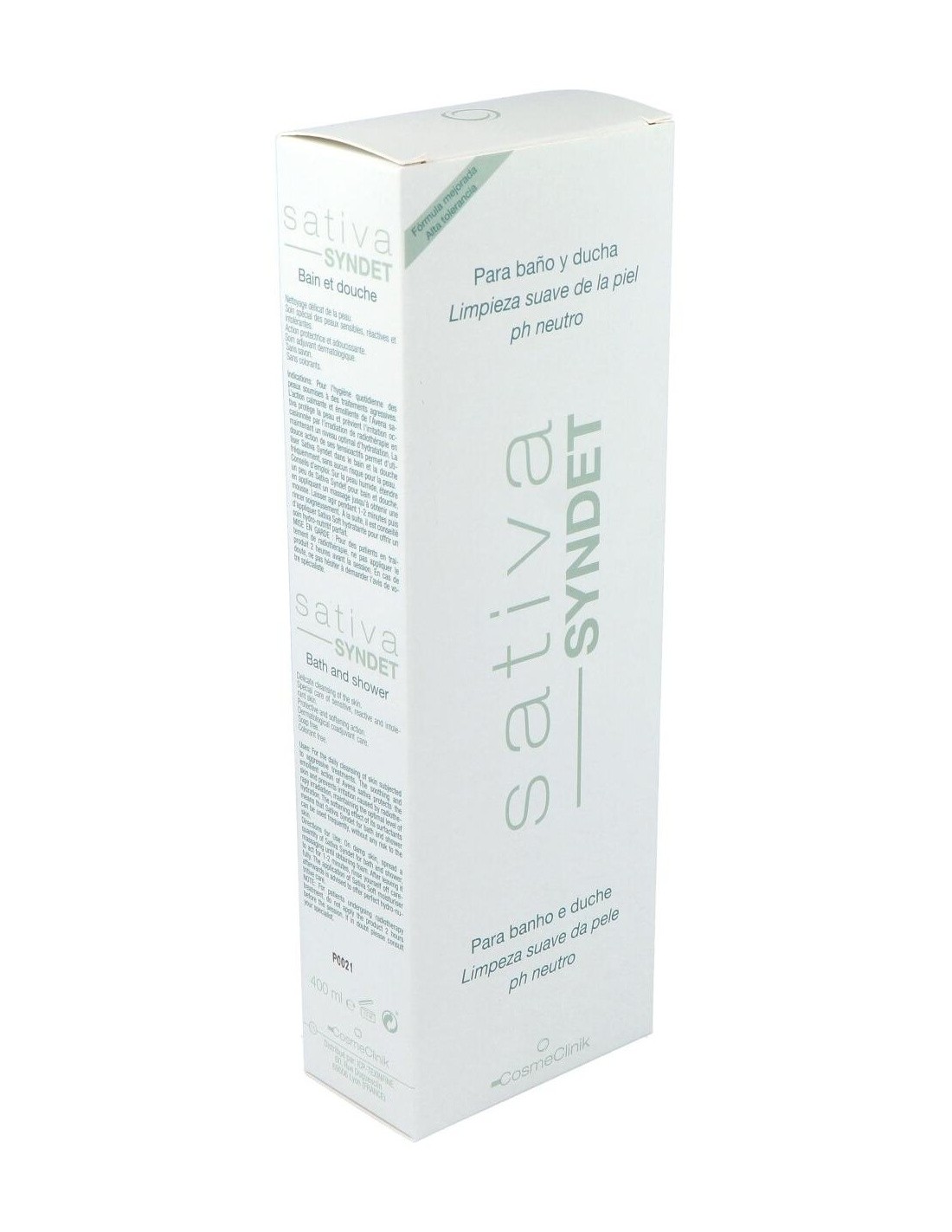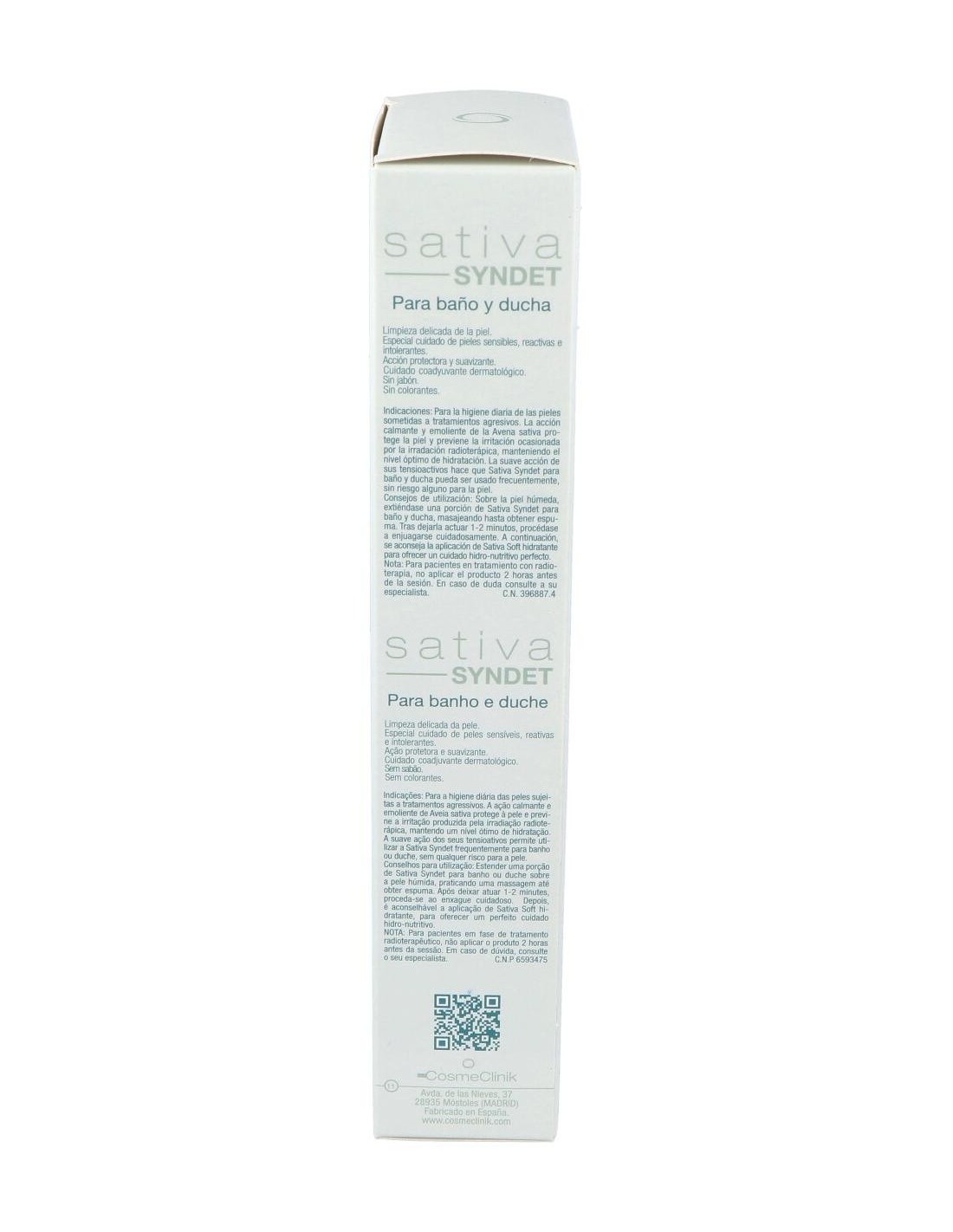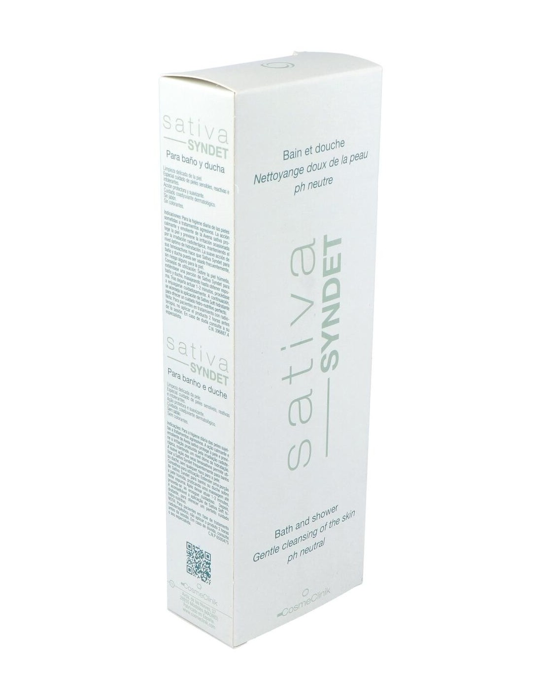 Cosmeclinik Sativa Syndet baño ducha es una suave loción limpiadora, indicada para el cuidado diario de pieles sometidas a tratamientos agresivos. Posee propiedades calmantes y emolientes, gracias a la presencia de avena sativa en su formulación.