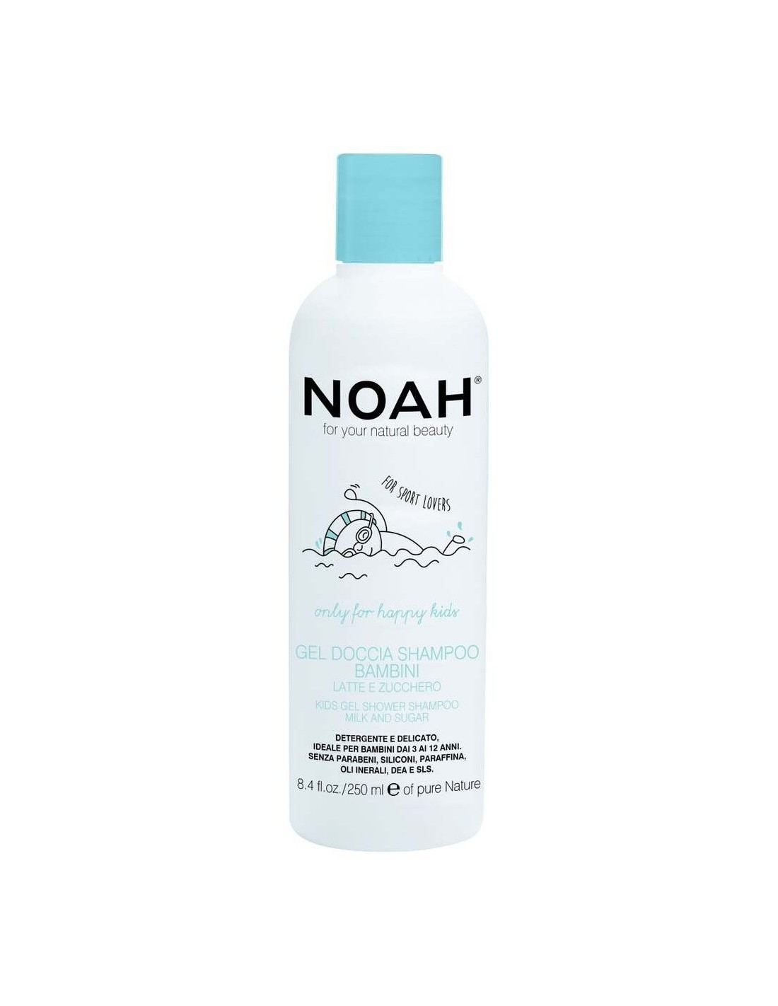 Gel de ducha champú infantil, excelente después de la piscina o el gimnasio. Formulado con tensioactivos de origen vegetal, limpia perfectamente el cuero cabelludo y el cabello. El gel, enriquecido con azúcar hidratante, leche de almendras nutritiva y proteínas de arroz suavizantes, deja la piel sedosa y el cabello suave. Ideal para la higiene diaria. El producto NO contiene Siliconas, Parabenos, Parafina, Aceites Minerales, DEA y SLS.