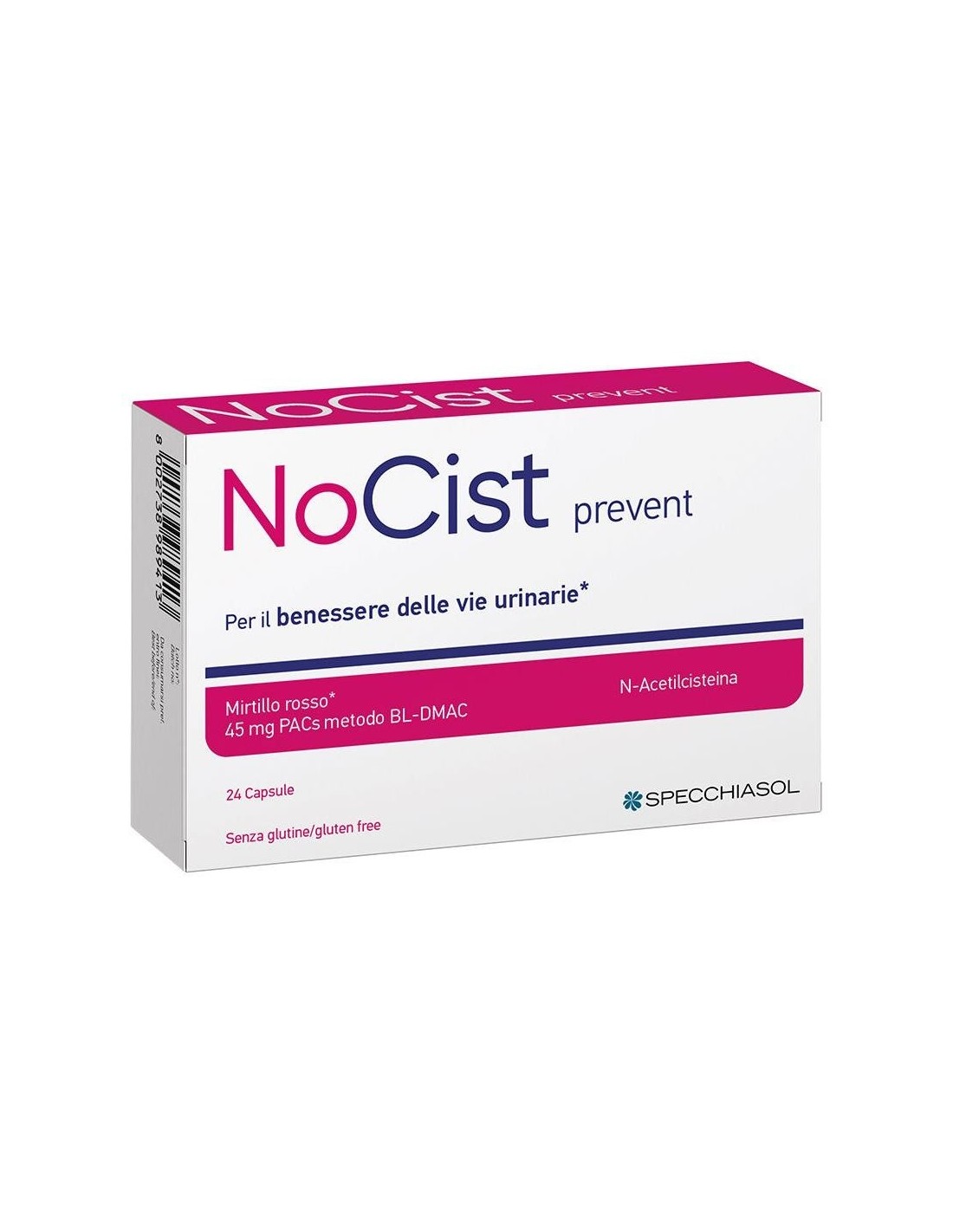 NoCist Prevent de Specchiasol es un complemento alimenticio a base de extractos de Arándano Rojo y Abedul, útil para favorecer la funcionalidad de las vías urinarias y el drenaje de líquidos corporales.Composición activa por 2 cápsulas:
