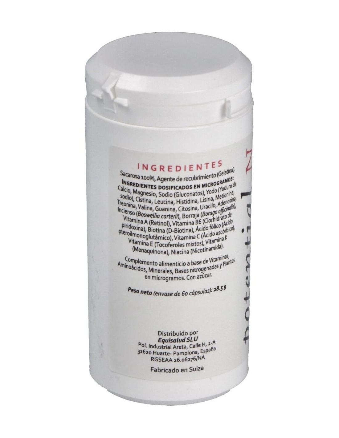 Minerales: Calcio, magnesio, sodio (gluconatos), yodo (yoduro de sodio). Aminoácidos: Cistina, leucina, histidina, lisina, metionina, treonina, valina, guanina, citosina, uracilo, adenosina.