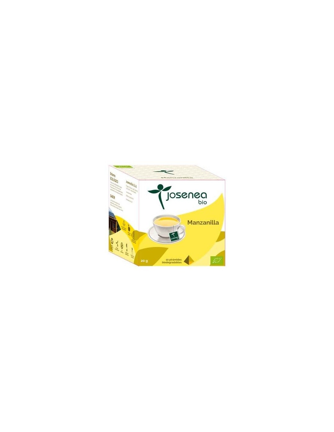La Manzanilla 10Piramides Ensobradas Bio de Josenea es una infusión ecológica para consumidores que buscan una opción natural y práctica, con bolsitas piramidales que facilitan una mejor extracción del sabor y aroma.