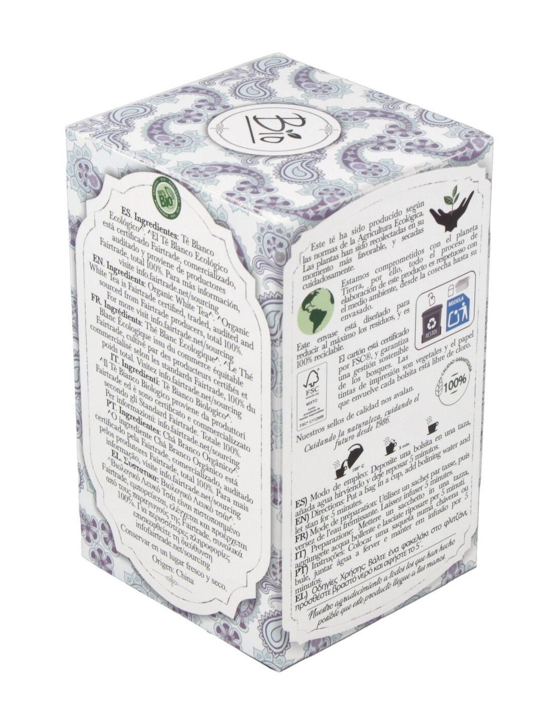 - Elaborado con hojas de té blanco de cultivo biológico, garantizando un producto libre de pesticidas y aditivos químicos.