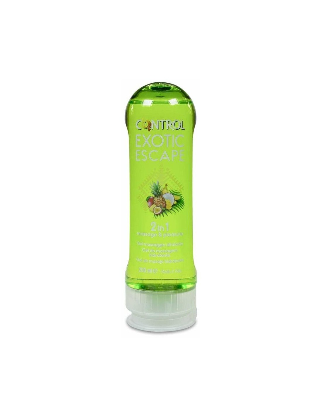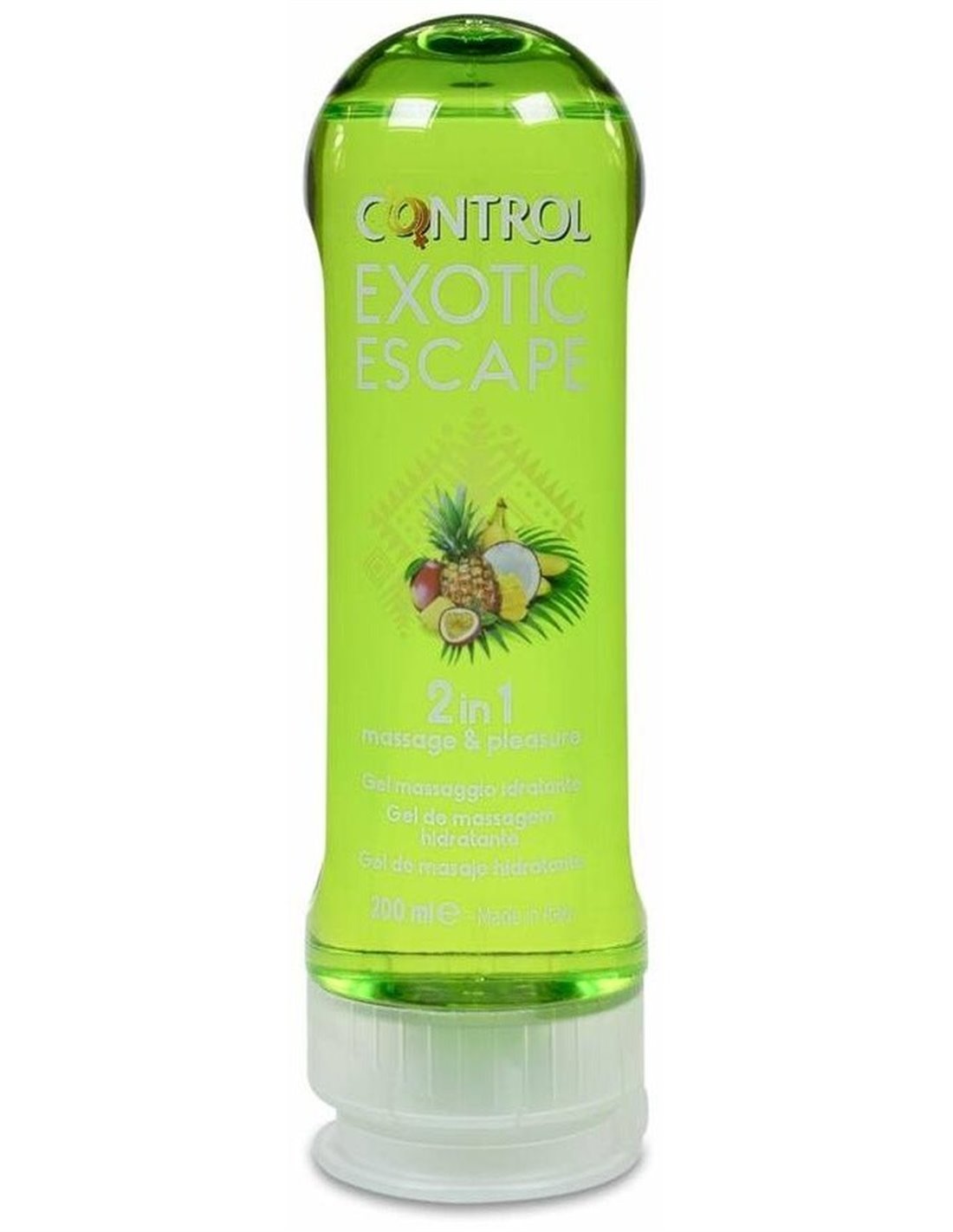 CONTROLGel de masaje 2 en 1 con un aroma exótico como las frutas de Sudamérica. Tiene una acción hidratante y estimulante que contribuye al bienestar, la tranquilidad y el equilibrio. Ideal para masajes sensuales en todo el cuerpo gracias a su textura suave y sedosa De base acuosa e hipoalergénica. Exotic Escape no mancha, se puede ingerir en pequeñas cantidades y es compatible con el uso de preservativos.