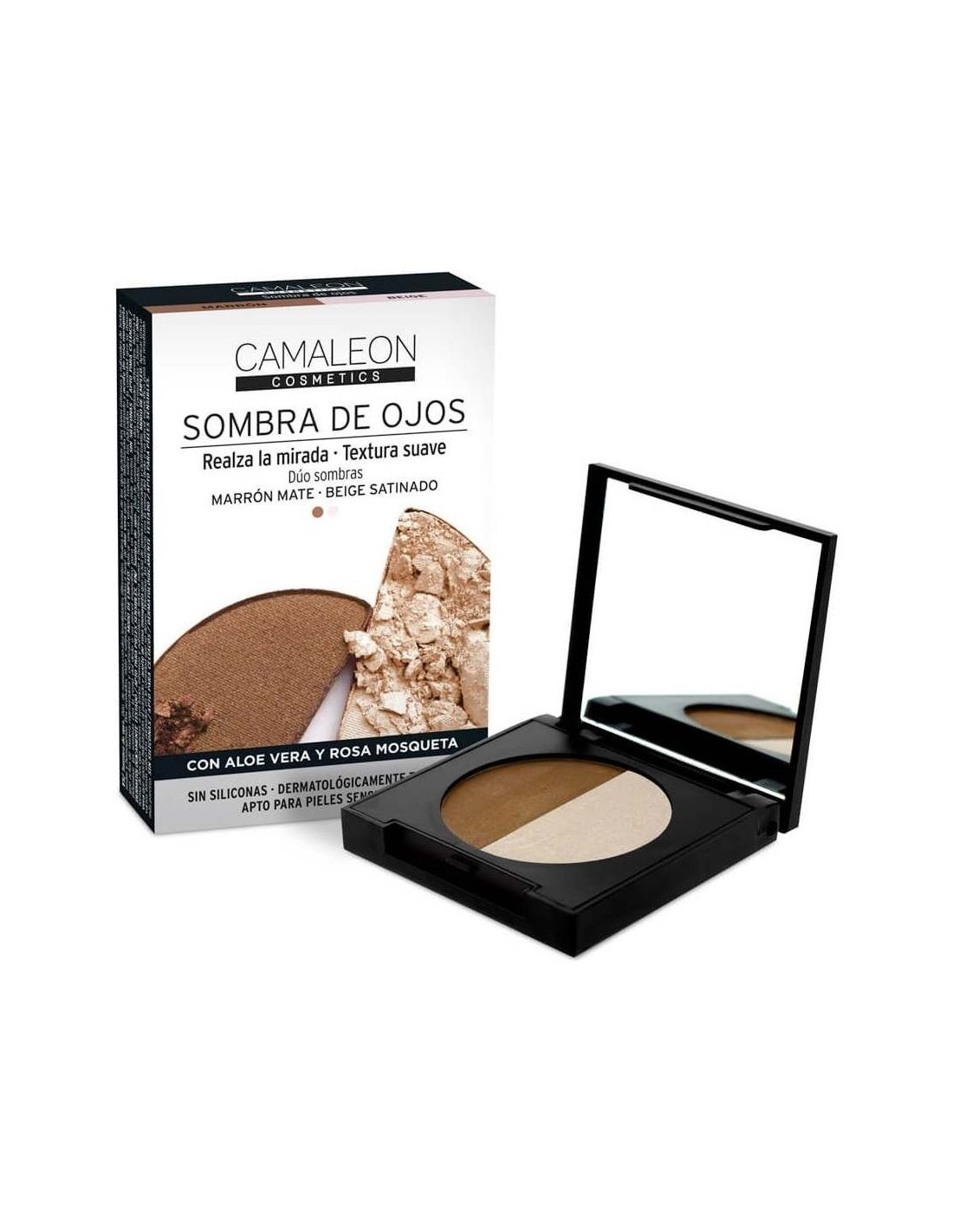 Las Sombras De Ojos Marrón - Beige de Camaleon ofrecen una opción práctica y versátil para quienes buscan tonos neutros que se integren fácilmente en diferentes looks.