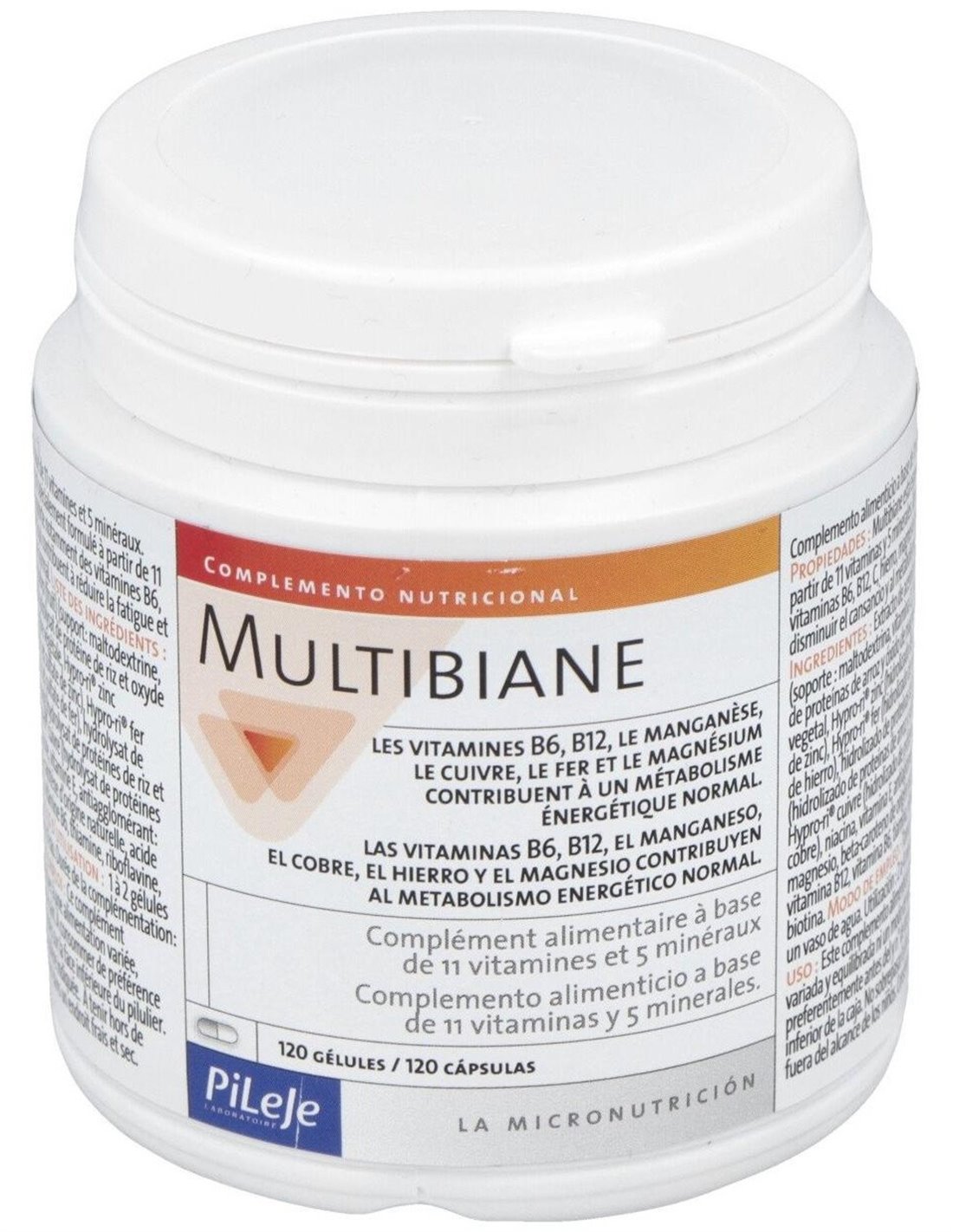 MULTIBIANE | Multibiane 120cápsSituaciones como las dietas de adelgazamiento, una alimentación inadecuado o una sobrecarga de trabajo intelectual pueden ser causas de desequilibrio de vitaminas y minerales.Multibiane es un complemento alimenticio que aporta 11 vitaminas y minerales para contribuir al funcionamiento óptimo del sistema inmunitario (vitaminas A, B6, B12 y C) y ayuda a la reducción del cansancio (vitaminas C, B6, B12, folatos, niacina y magnesio).