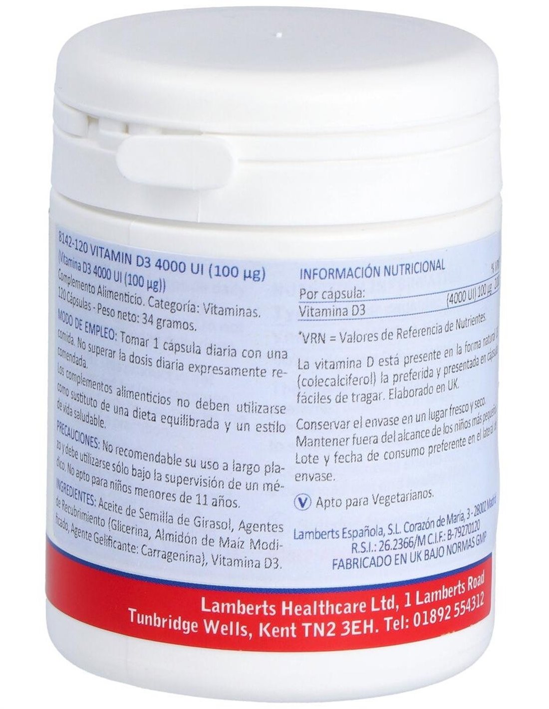 Vitamina D3 4000 UI (100 µg) 120 Caps. de Lamberts