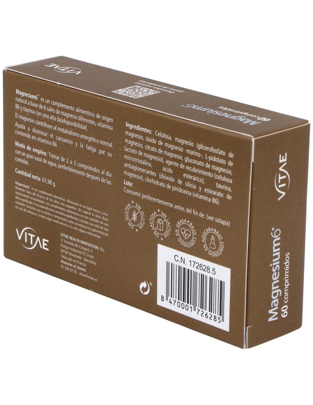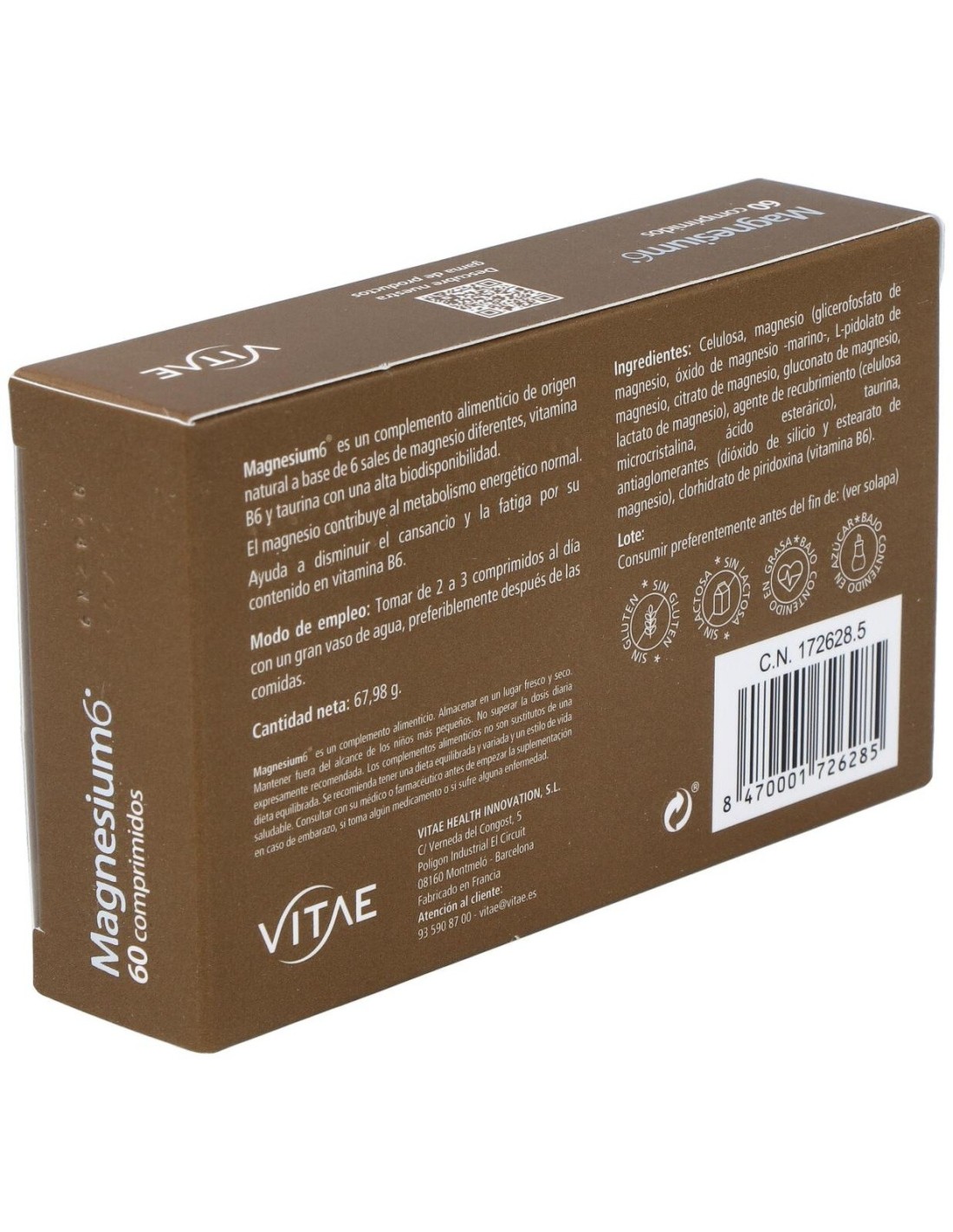 Celulosa, magnesio (glicerofosfato de magnesio, óxido de magnesio -marino, L-pidolato de magnesio, citrato de magnesio, gluconato de magnesio, lactato de magnesio), agente de recubrimiento (celulosa microcristalina, ácido esterárico), taurina, antiaglomerantes (dióxido de silicio y estearato de magnesio), clorhidrato de piridoxina (vitamina B6).
