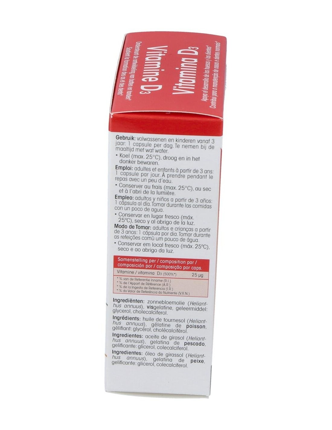 - Contiene vitamina D3 en una concentración que contribuye al mantenimiento de huesos y dientes saludables.
