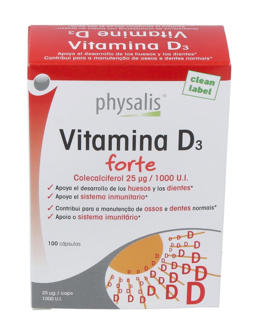 Vitamine D3 Forte de Physalis es un suplemento de vitamina D3 dirigido a personas que buscan apoyar su salud ósea y sistema inmunológico, proporcionando una dosis concentrada para facilitar su absorción y uso diario.