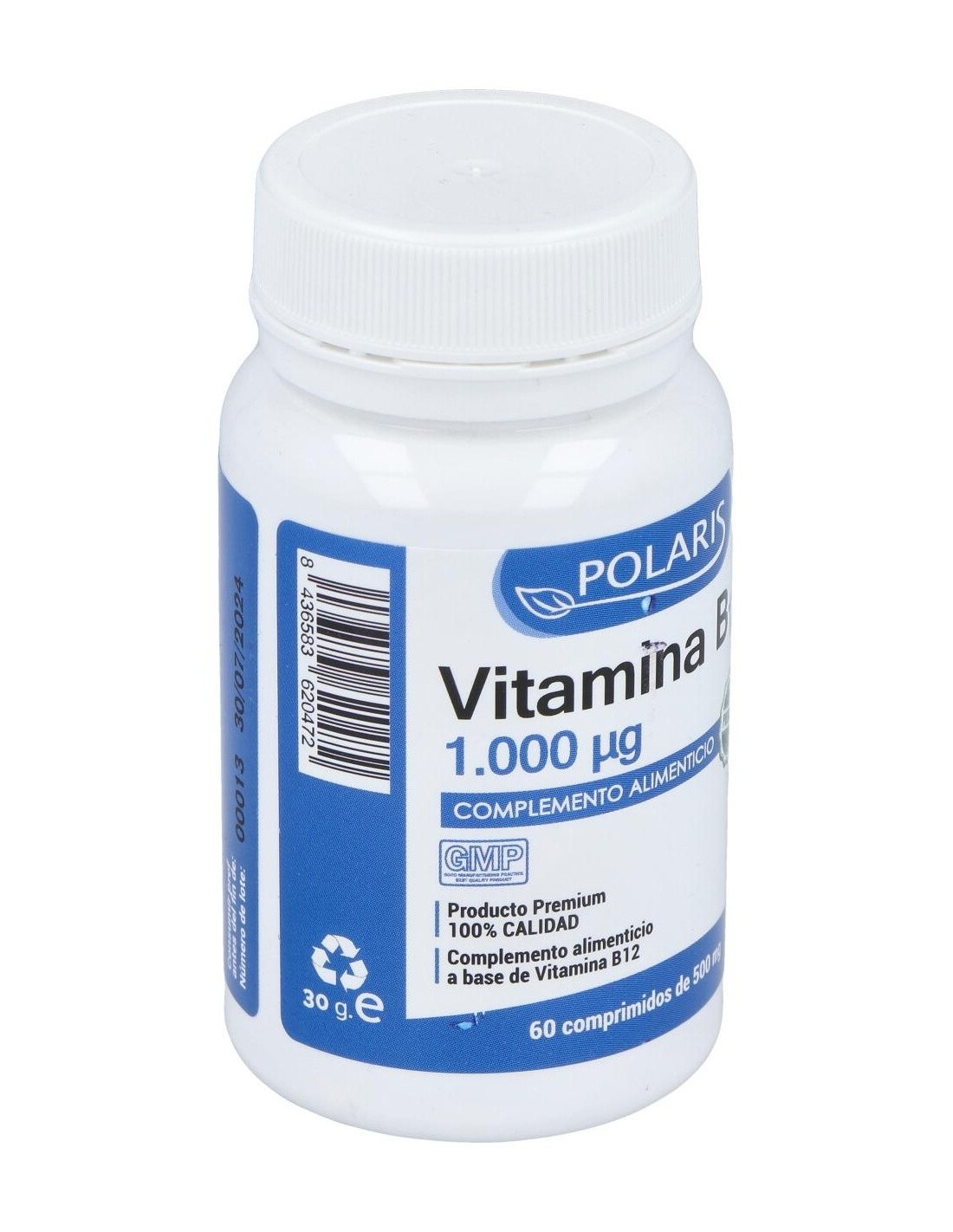 Vitamina B12 1000Mcg. 60Comp. de Polaris proporciona una forma accesible y dosificada para complementar la ingesta diaria de esta vitamina, contribuyendo a mantener hábitos saludables.