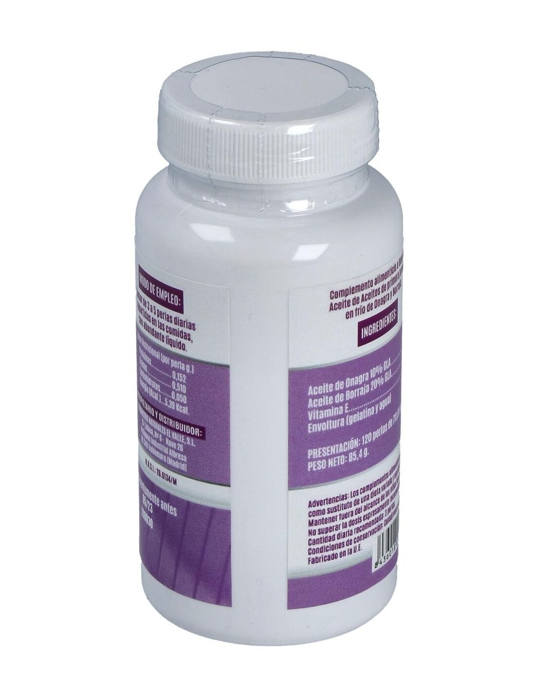 Complemento alimenticio basado en Onagra y Borraja, conservados tras la extracción de su aceite por presión en frío de sus semillas. Destacan por su riqueza en ácidos grasos esenciales necesarios para la correcta producción de prostaglandinas (precursores de las hormonas capaces de regular muchas funciones del organismo). Contribuye a paliar los síntomas premenstruales y a la salud de la piel, ayuda al control del colesterol y problemas del corazón, entre otros. También contiene sales minerales, vitamina E, mucílagos y flavonoides que le aportan propiedades diuréticas y sudoríficas, permitiendo la eliminación de toxinas.