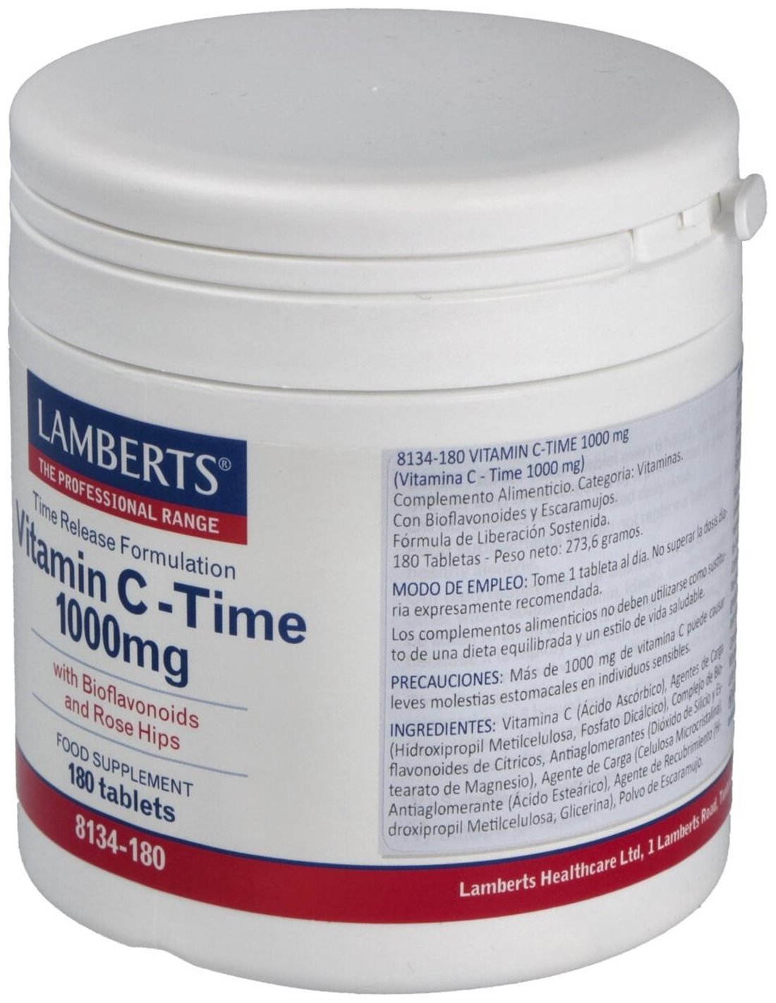 Vitamina C 1000 mg + Bioflavonoides Time Release 180 Tabs. de Lamberts