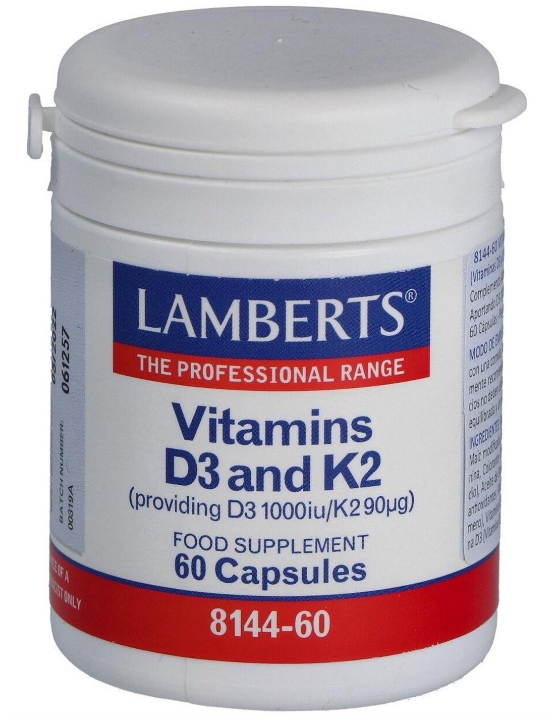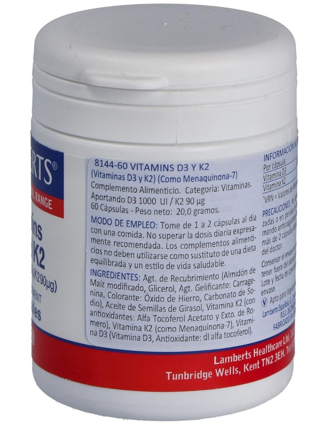 Vitamina D3 (1000 UI) + K2 (como MK-7) (90 µg) 60 Caps. de Lamberts