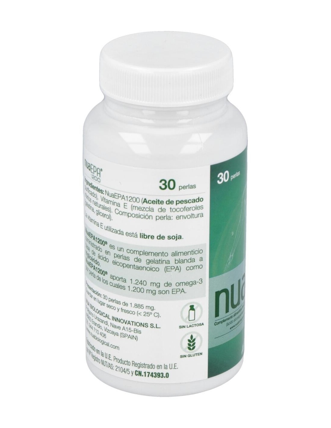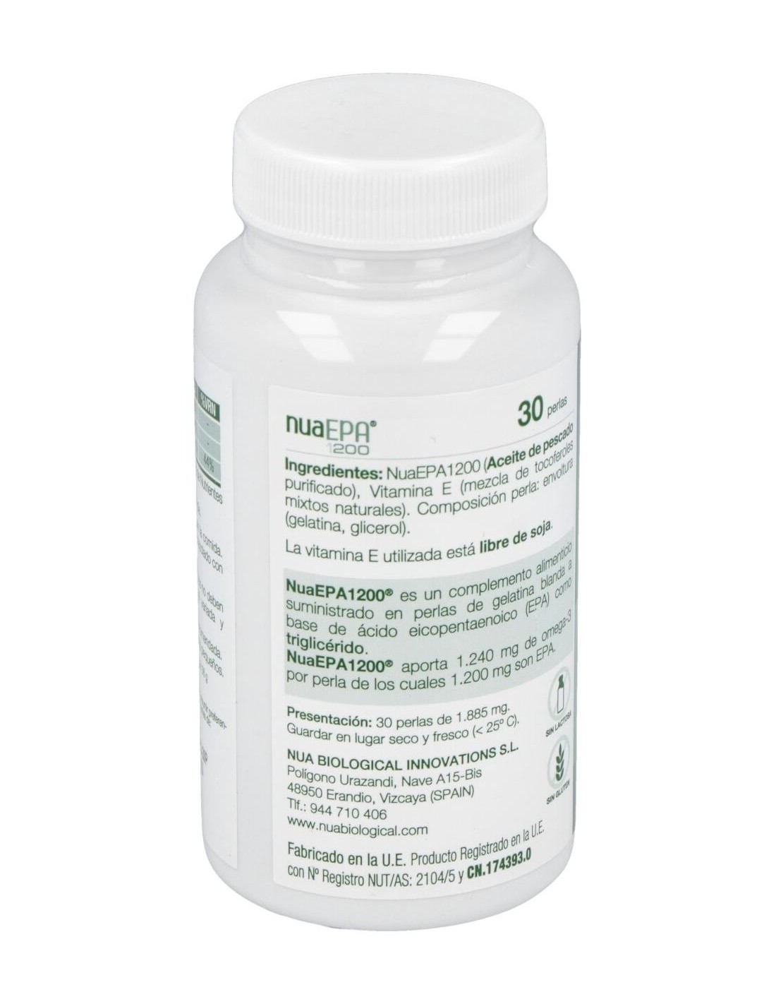 NuaEPA1200 (Aceite De Pescado Purificado) , Vitamina E (Libre De Soja) (Mezcla De Tocoferoles Mixtos Naturales) , Composición Perla (Envoltura (Gelatina, Glicerol)).