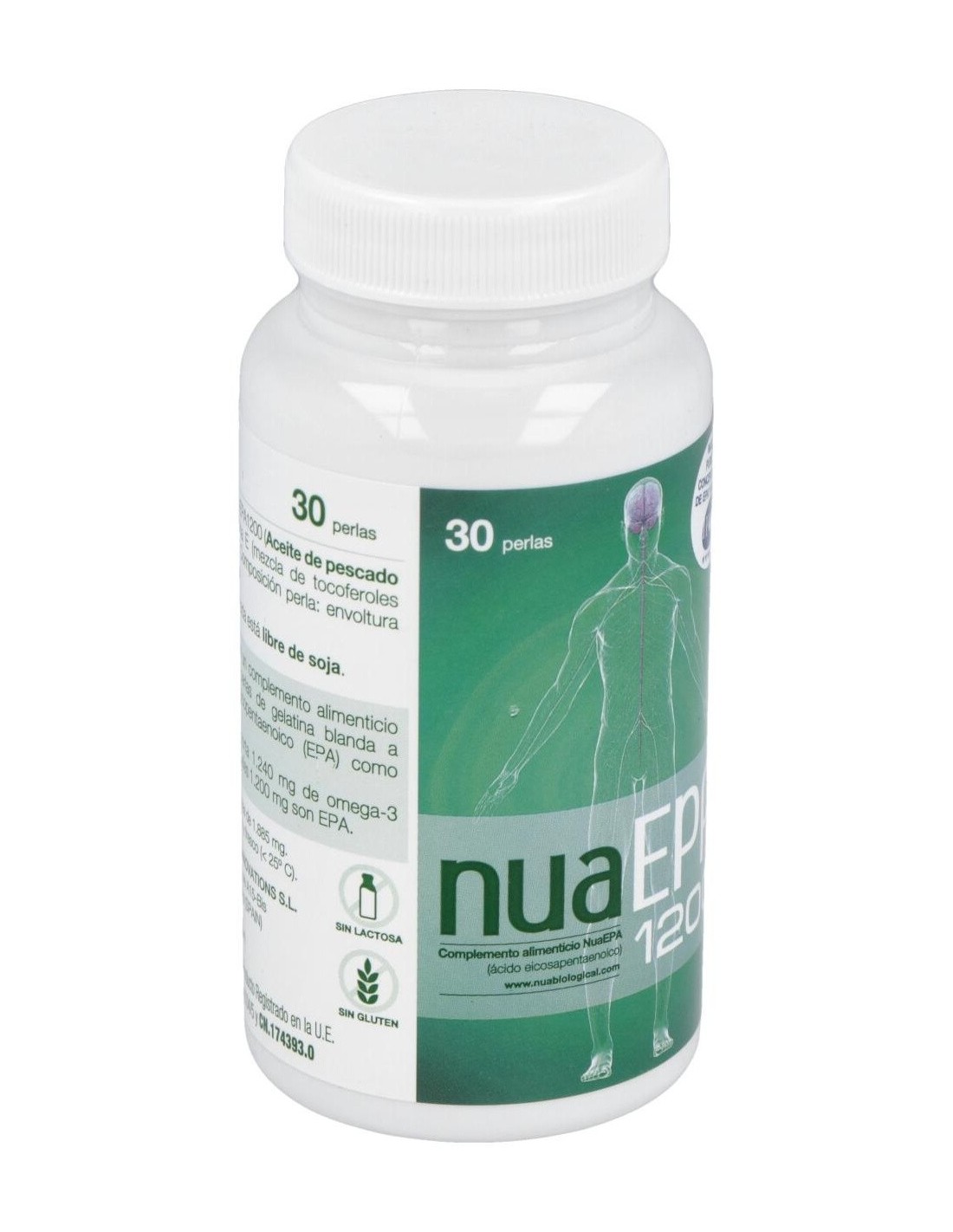 Nua Epa 1200 30caps es un complemento alimenticio formulado a base aceite de pescado purificado como fuente de EPA, Vitamina E, gelatina y glicerol, entre otros.