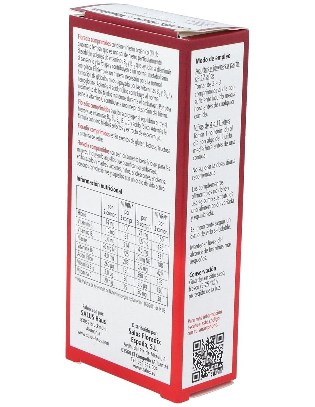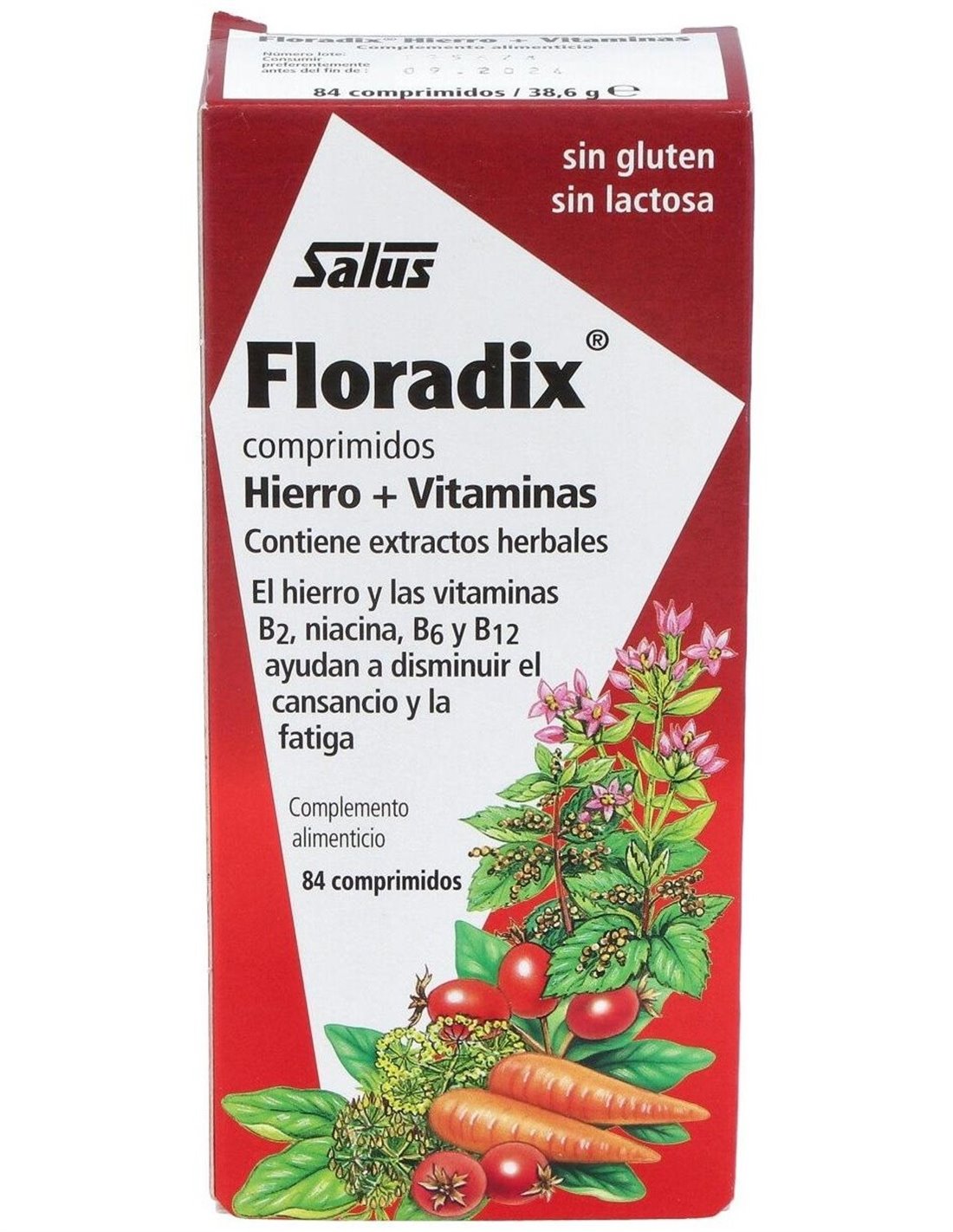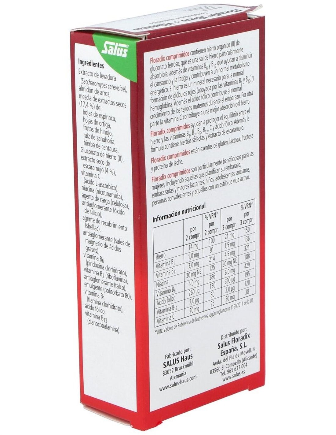 Floradix comprimidos de Salus es la variante sólida de Floradix jarabe, presenta una composición similar, a excepción del ácido fólico, sólo presente