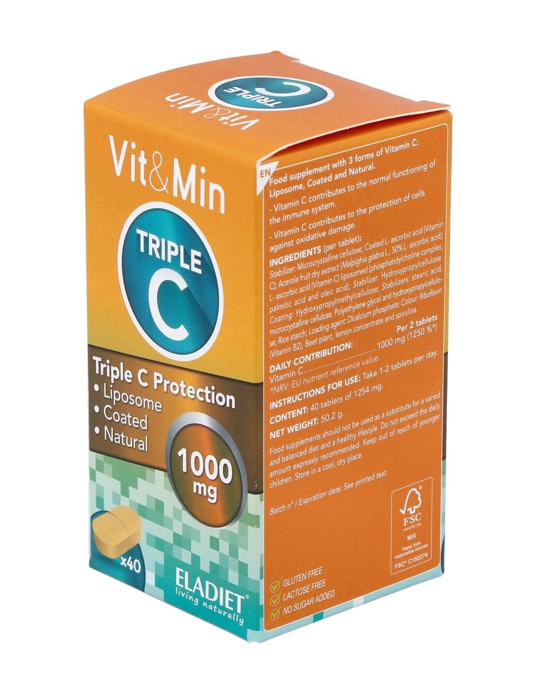 Vit&Min Triple C combina 3 tipos de Vitamina C, obteniendo como resultado una mejor biodisponibilidad. Estas vitaminas, con 3 tiempos de absorción diferentes, serán absorbidas paulatinamente evitando niveles de saturación en plasma y la excreción del exceso de vitamina. Por ello, conseguiremos una mayor concentración de Vitamina C en el torrente sanguínea durante más tiempo.