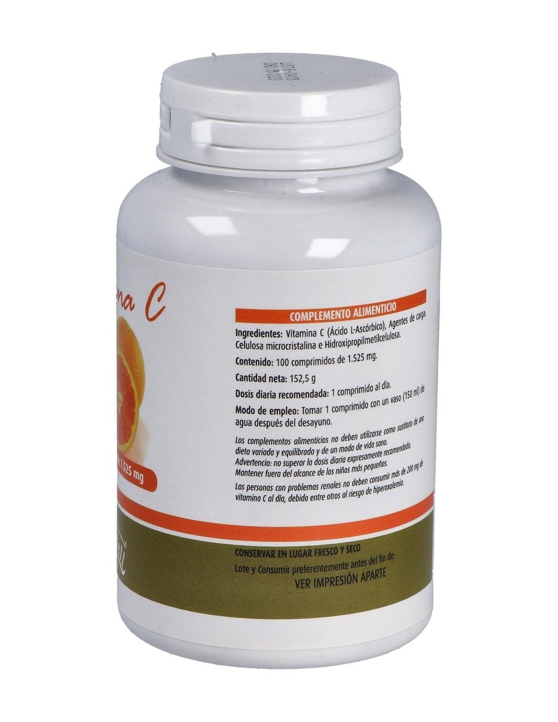 Vitamina C (Ácido l-ascórbico (100%).