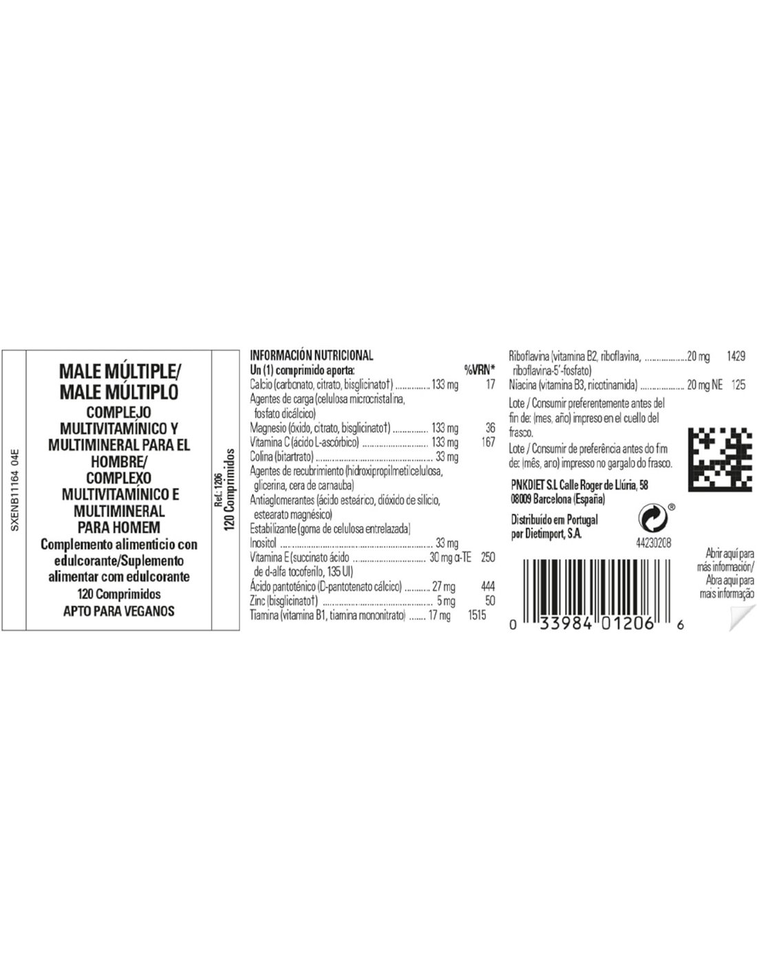 Con una fórmula avanzada y cuidadosamente equilibrada, Male Multiple ofrece un aporte instantáneo de nutrientes que ayudan a mantener el bienestar físico y mental. Cada comprimido está pensado para fortalecer el sistema inmunológico, mejorar la función muscular y promover la salud cardiovascular, todo en una sola cápsula fácil de tomar.