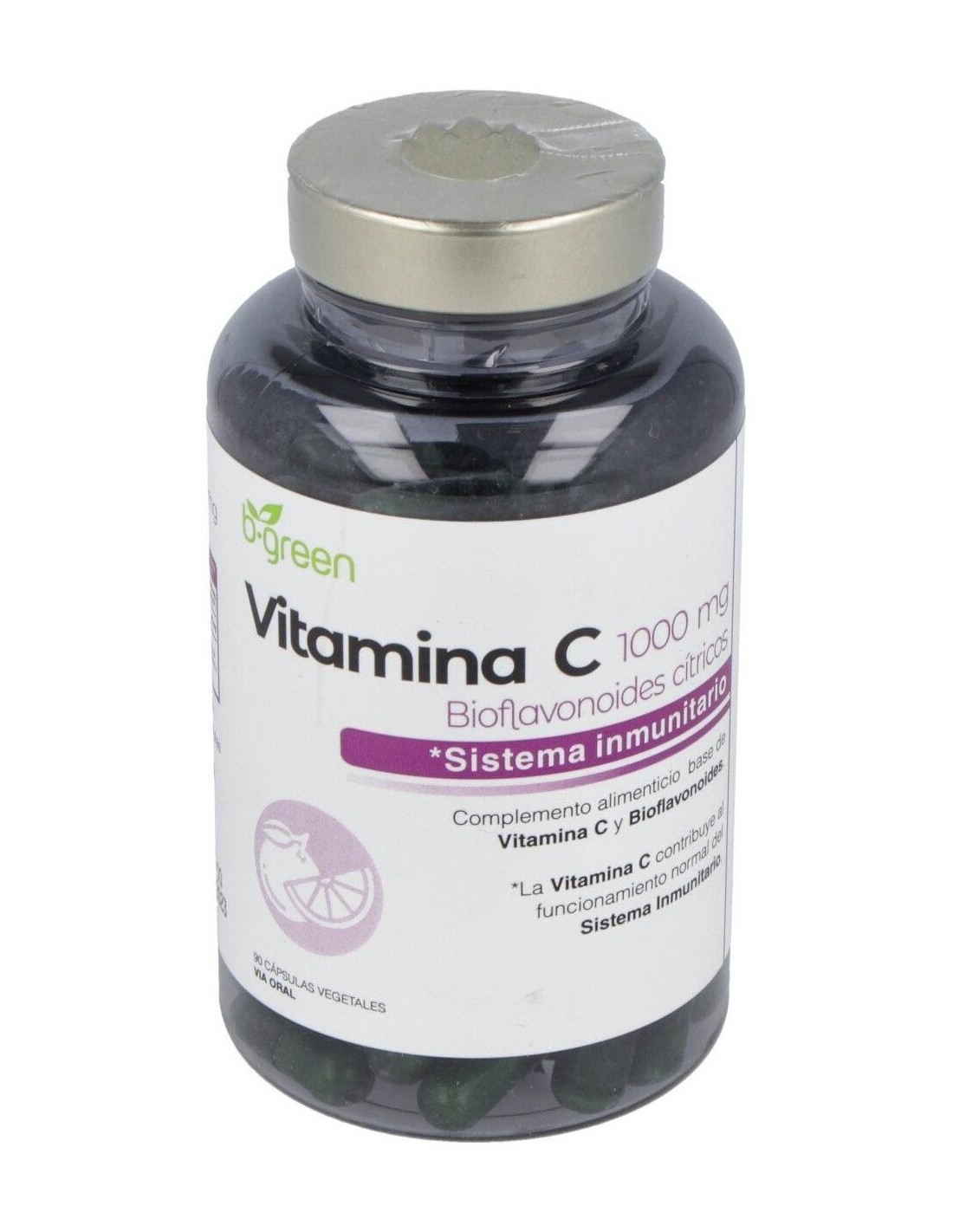 Complemento alimenticio en formato cápsula, elaborado a base de vitamina C y bioflavonoides cítricos, que contribuye al funcionamiento normal del sistema inmunitario.